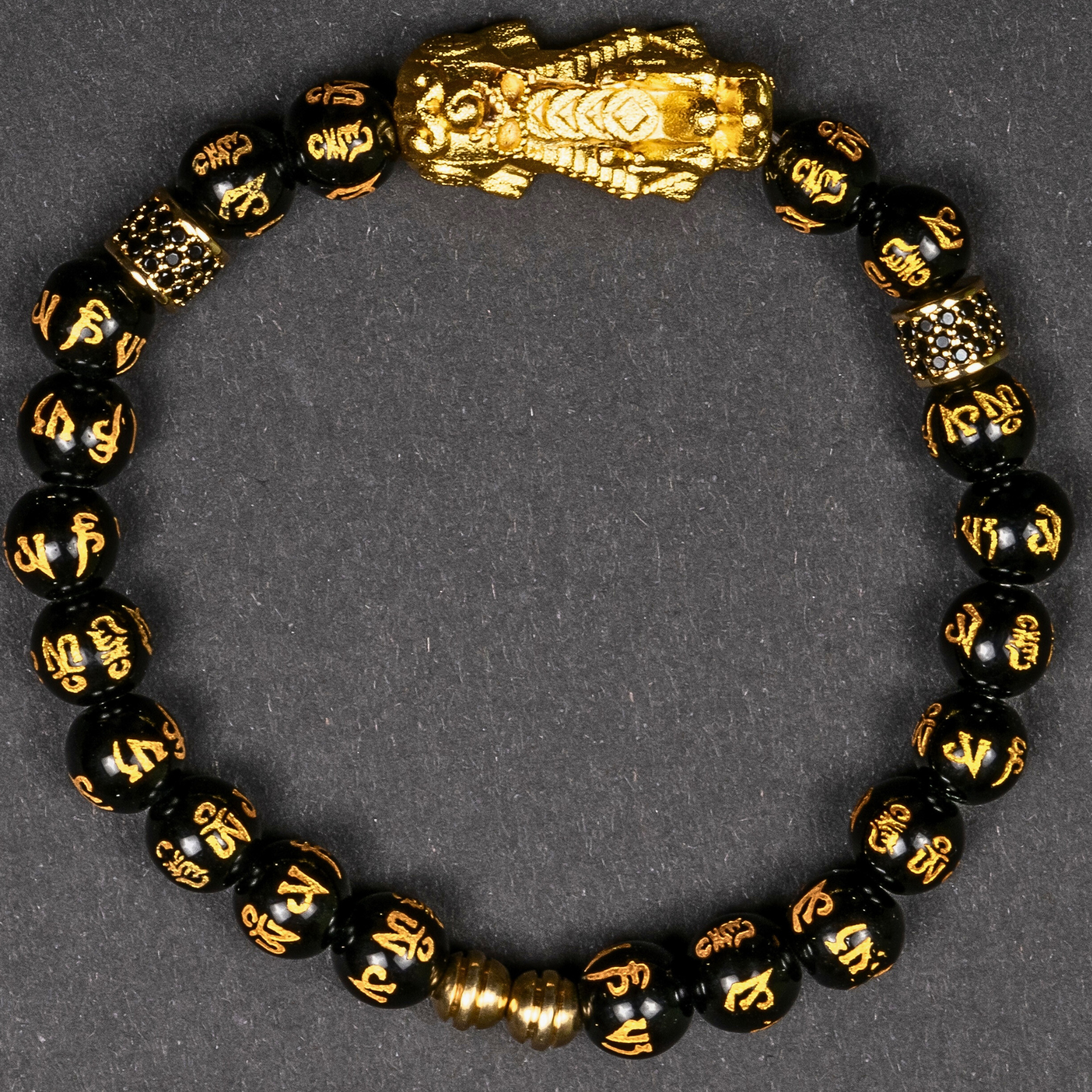 Onyx with Om Mantra Carving Pixiu Feng Shui Bracelet