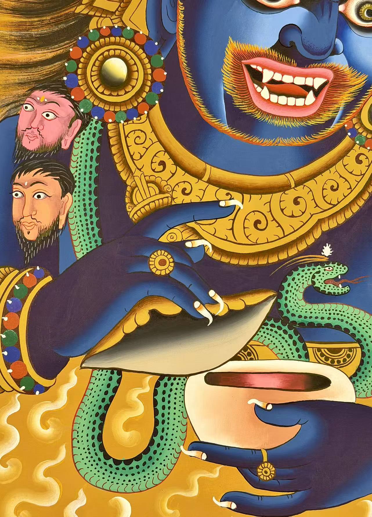 Fierce Compassion: Despite his fearsome appearance, Mahakala embodies the ultimate compassion of Avalokiteshvara.