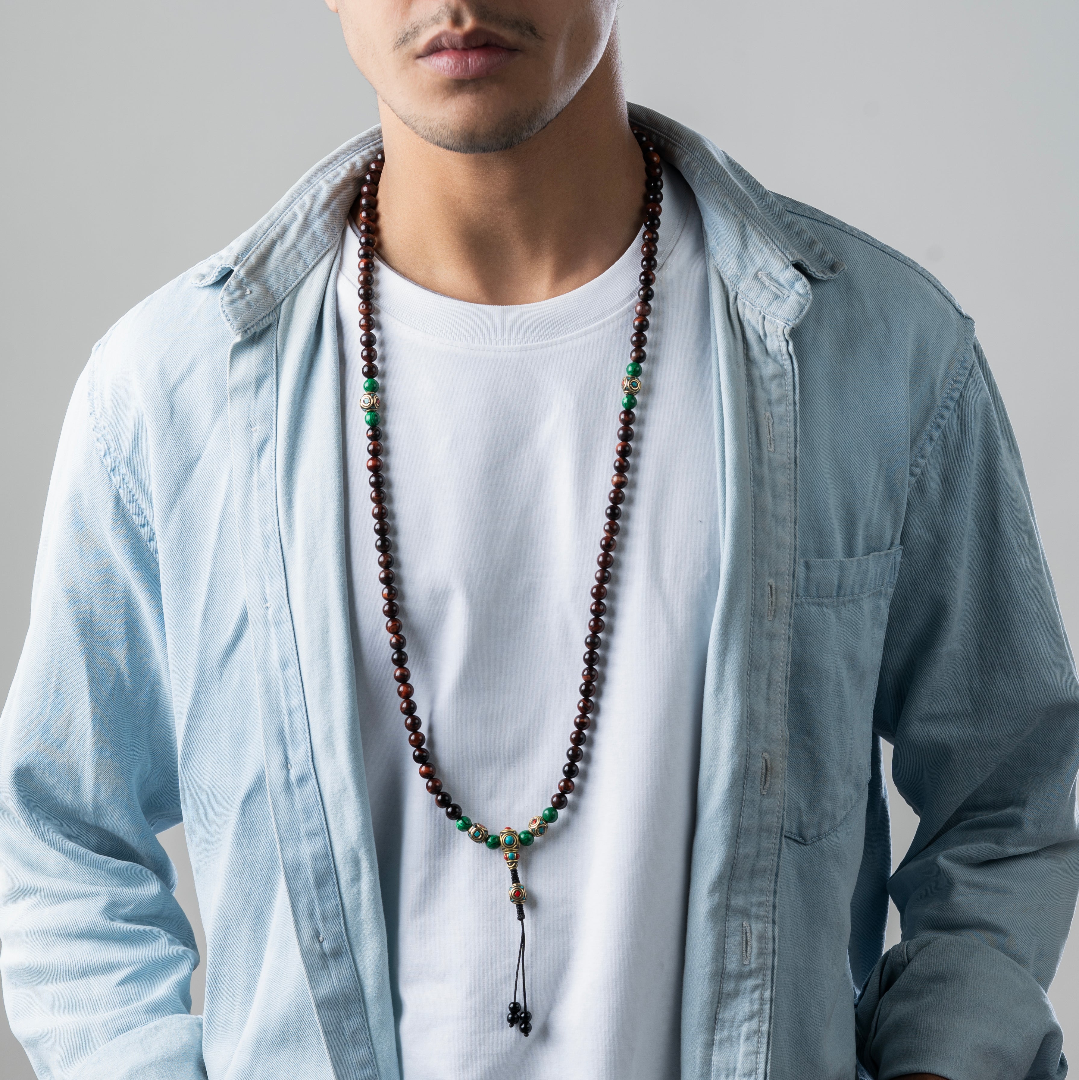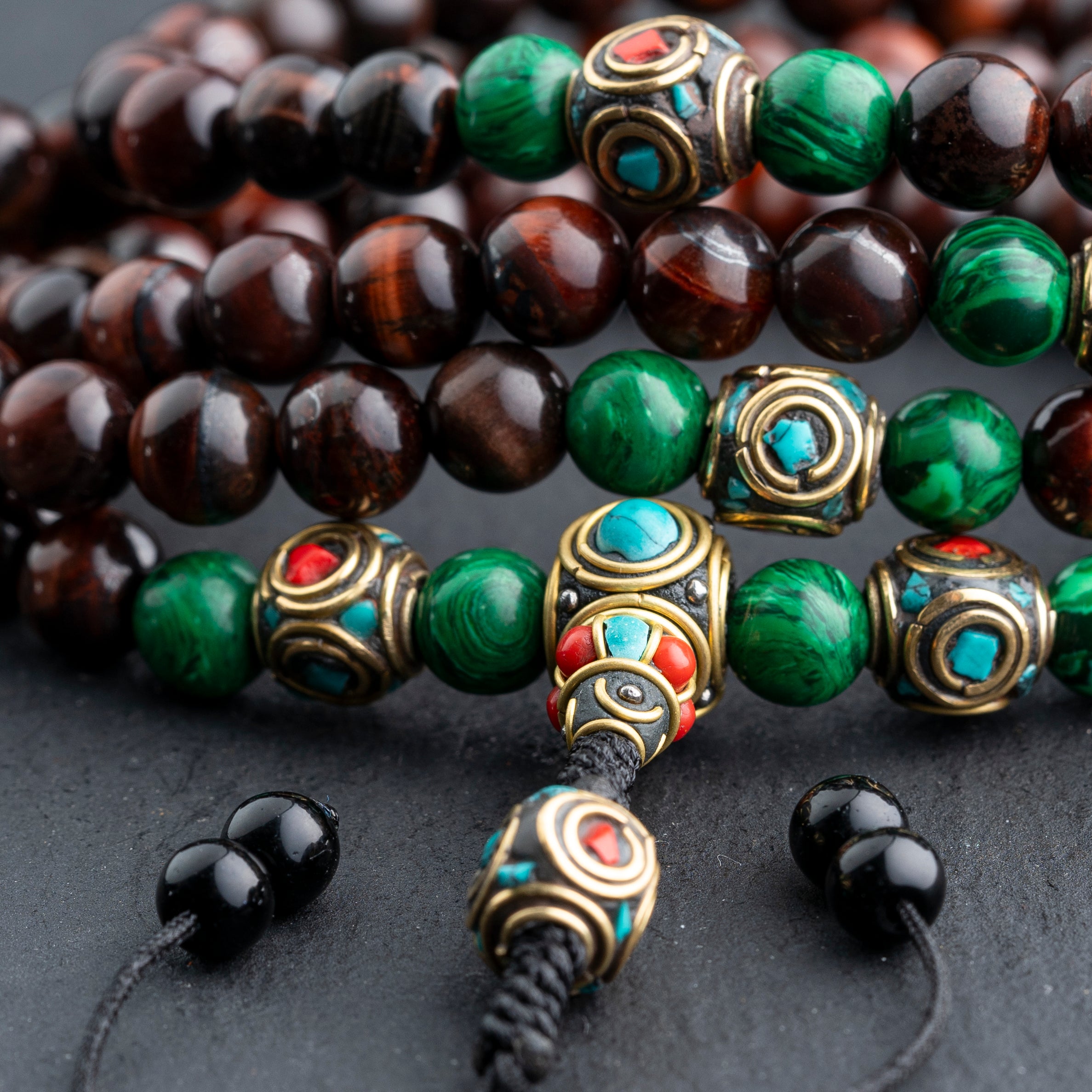 <strong>Material:</strong> Red Tiger Eye, Malachite<br>