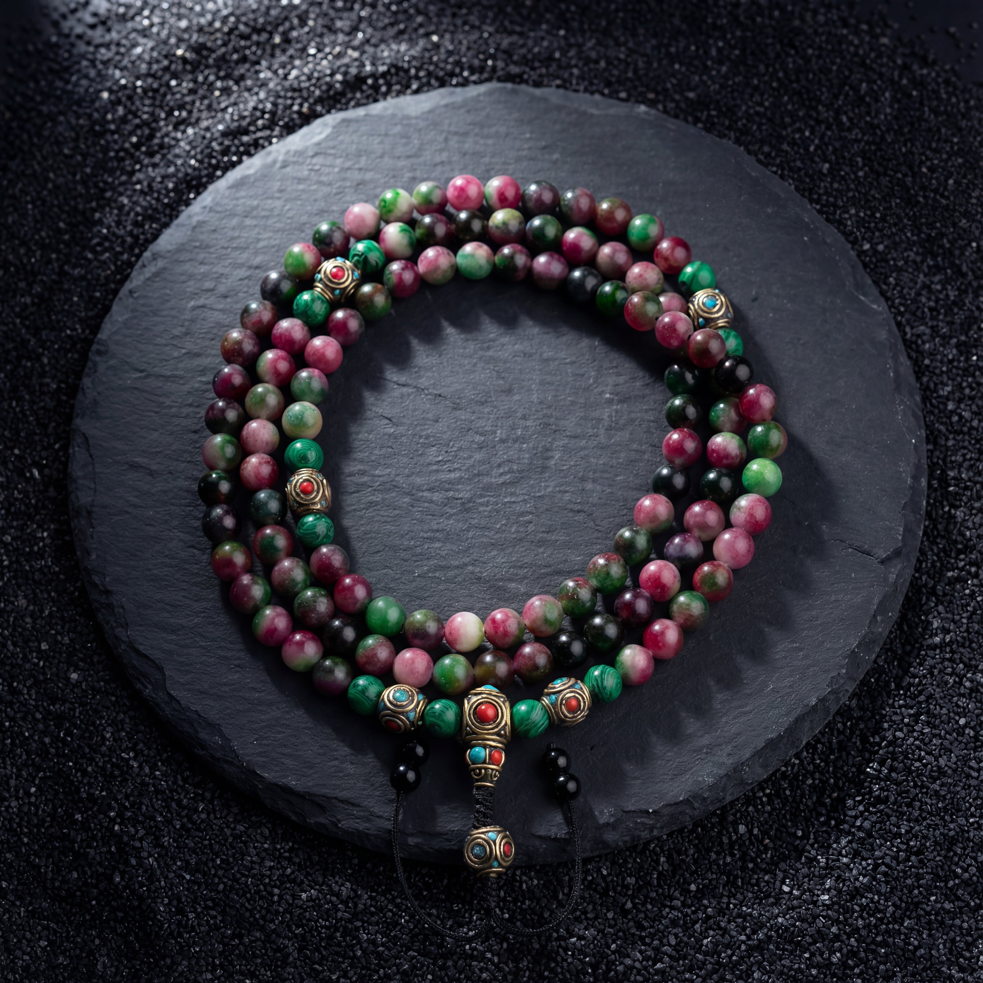 This mala really exceeded my expectations. The stones are beautiful and the overall craftsmanship is very high quality .
