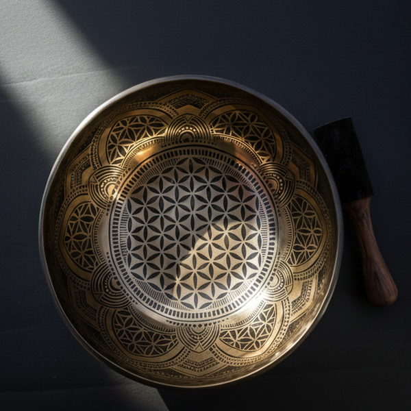 Handmade Tibetan Singing Bowl with Flower of Life and OM Symbol