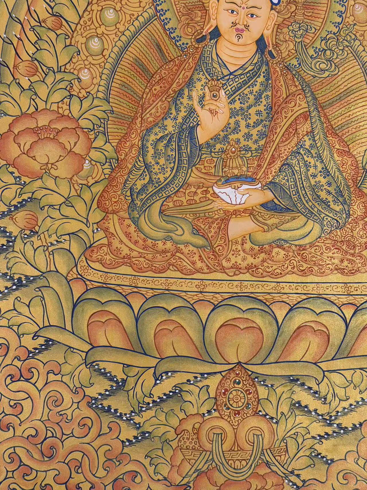 A Sacred Addition to Your Space This Guru Rinpoche Thangka radiates tranquility and spiritual depth. Its intricate details, vibrant colors, and symbolic imagery make it not just a decorative piece, but a powerful tool for meditation and personal growth.