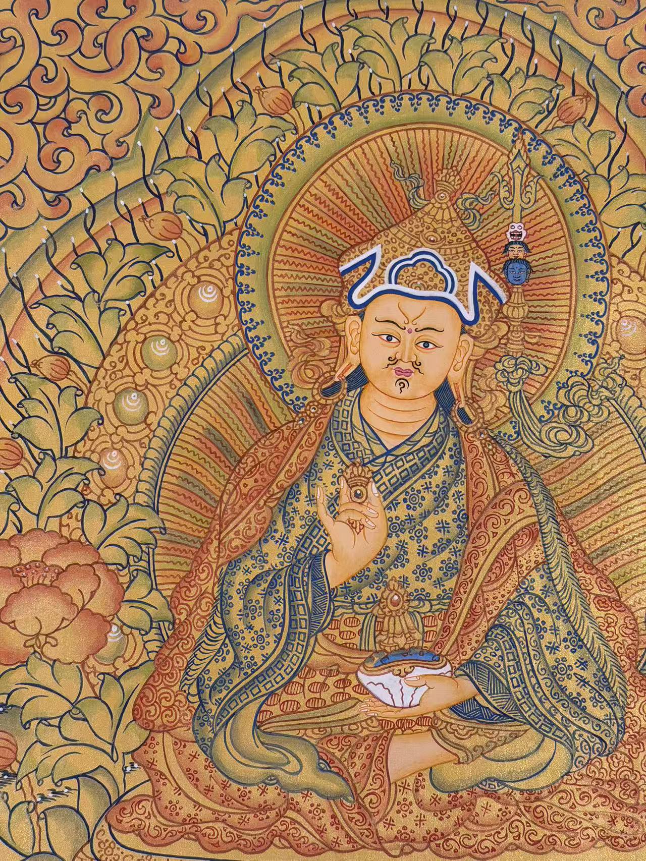 Invite the transformative energy of Guru Rinpoche into your life with this exquisite hand-painted masterpiece.