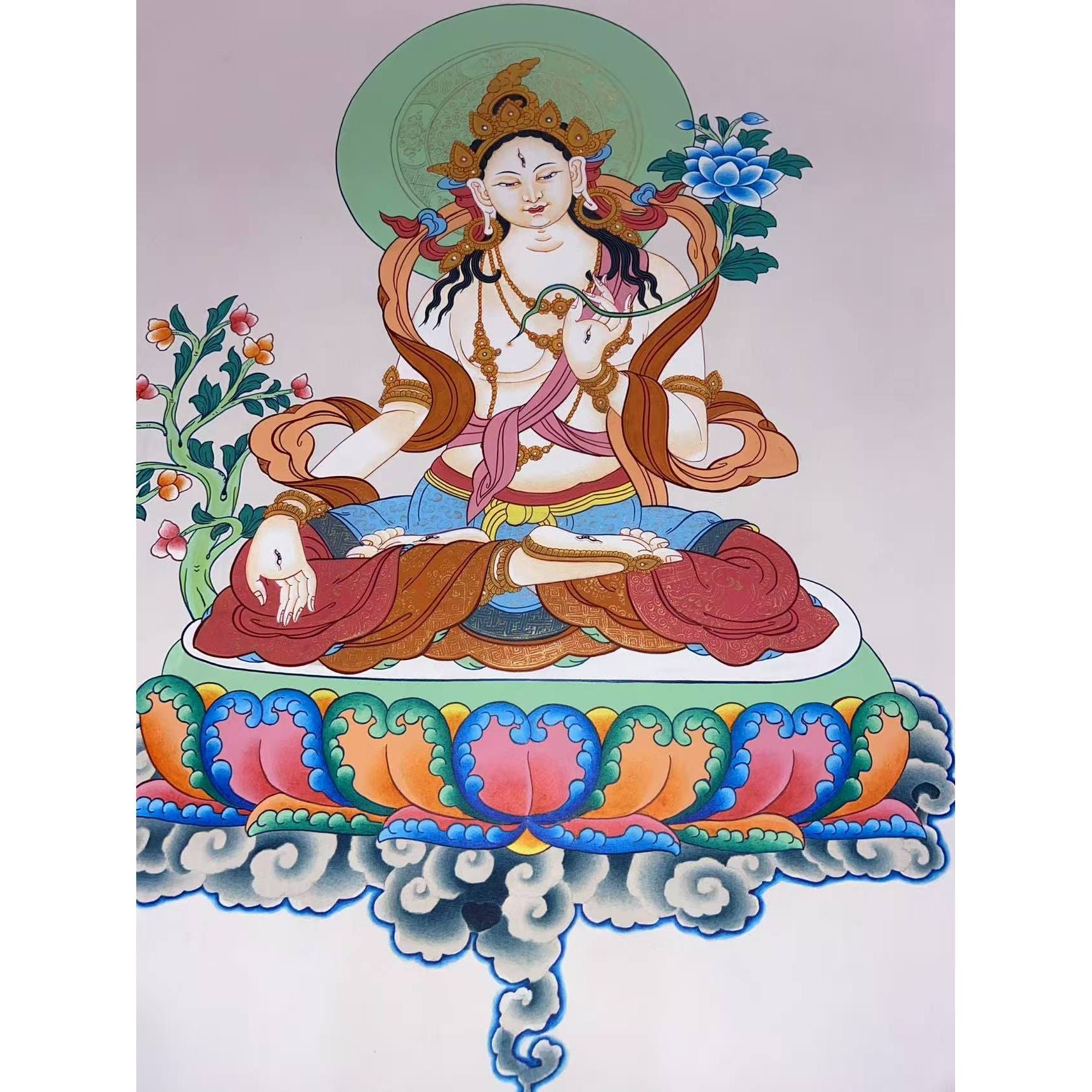 - Exquisite Craftsmanship: Hand-painted using dust of gold and Tibetan colors, showcasing exceptional craftsmanship and spiritual depth.