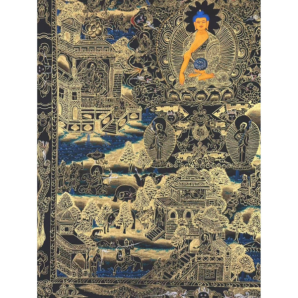 Buddha Life Story Thangka – A Journey to Enlightenment