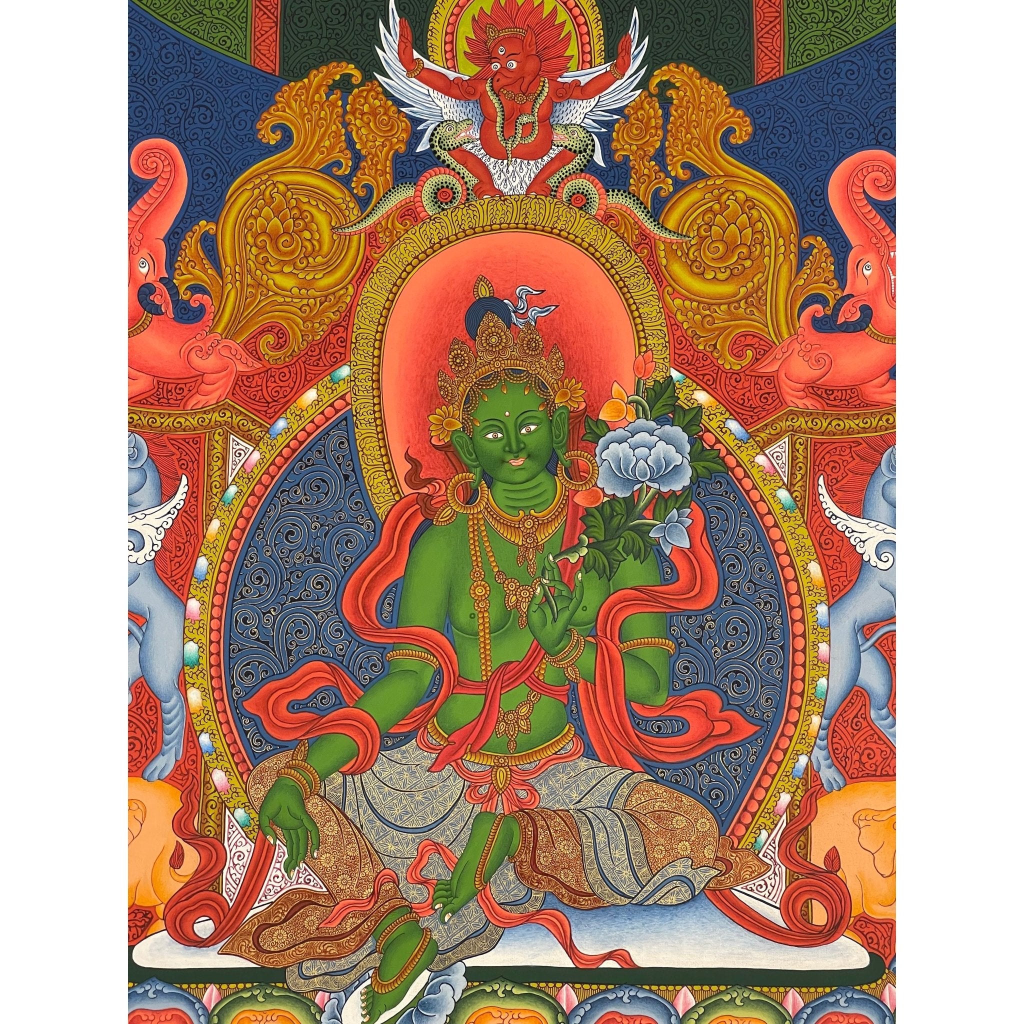 Cultural and Religious Depth: A meaningful portrayal of Green Tara, embodying compassion, wisdom, and active support.