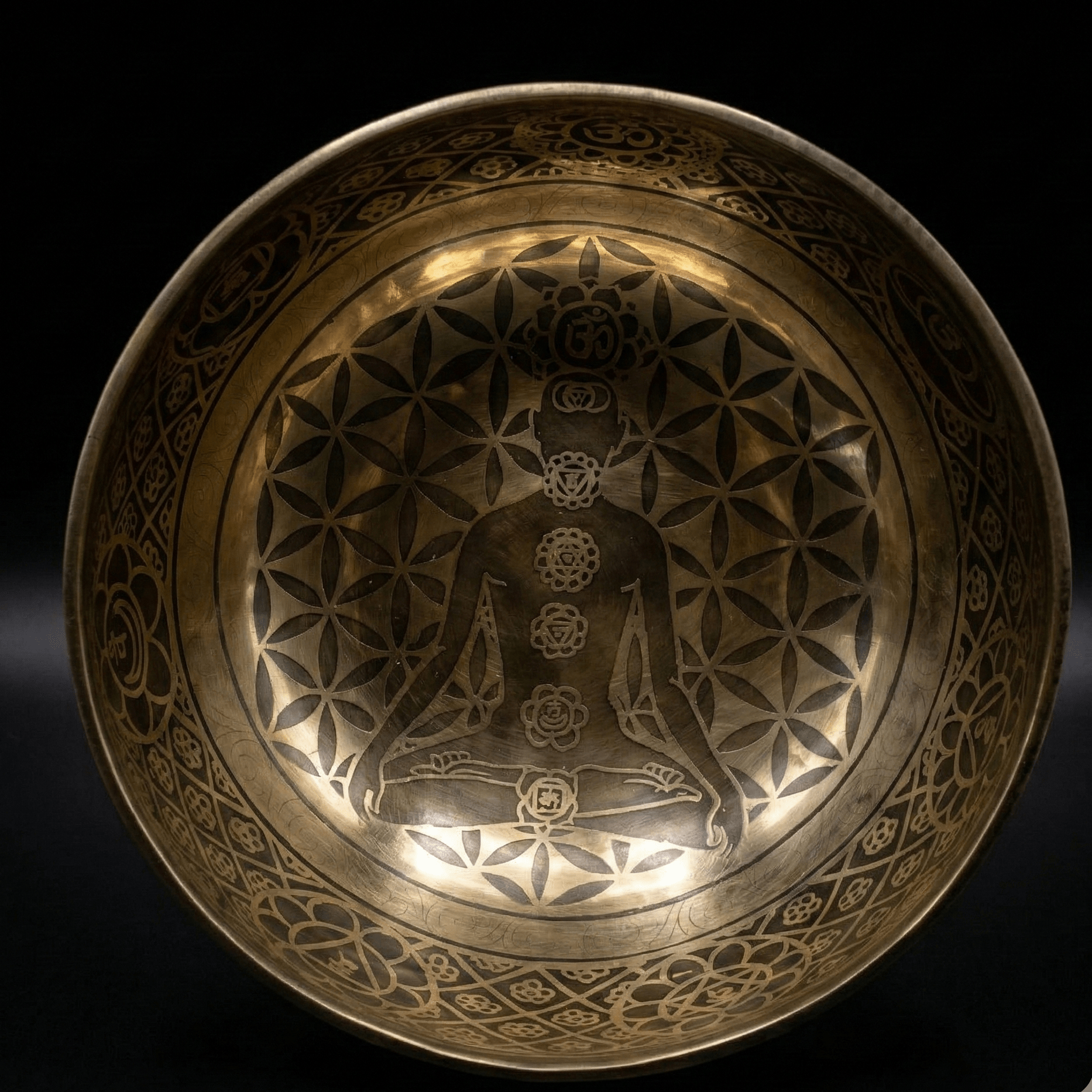 Handmade Tibetan Singing Bowl with Flower of Life & Seven Chakras