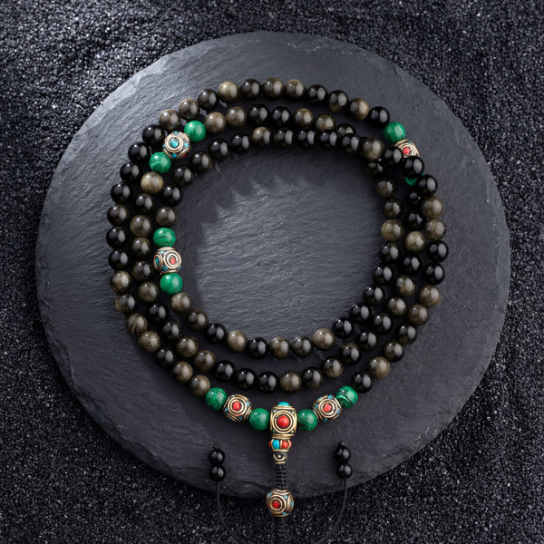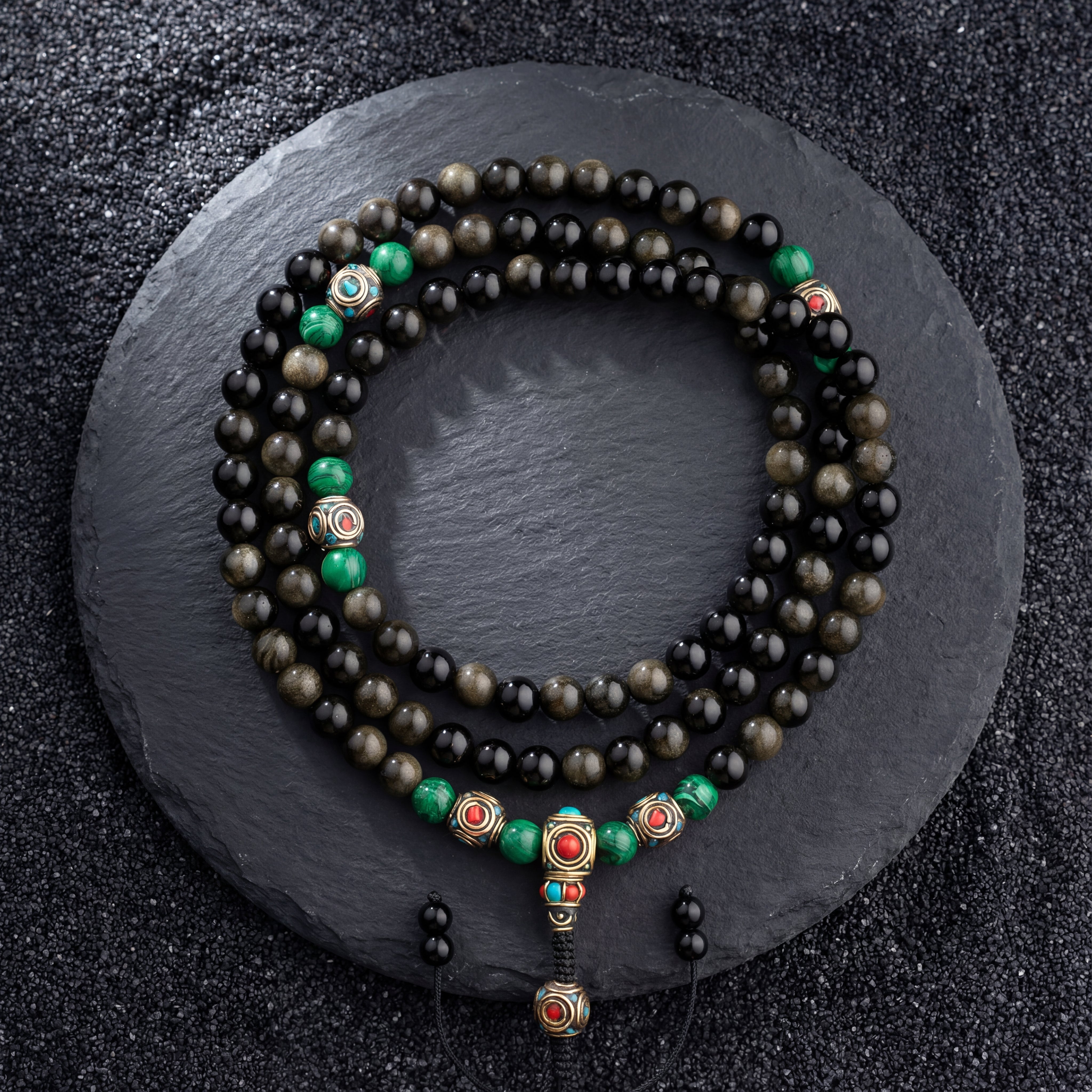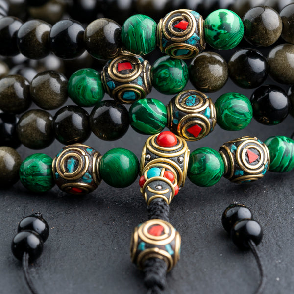 <strong>Material:</strong> Obsidian, Malachite<br>