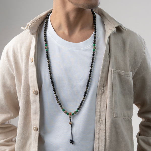 Wear this mala to protect yourself from negativity, encourage emotional healing, and embrace your spiritual growth.