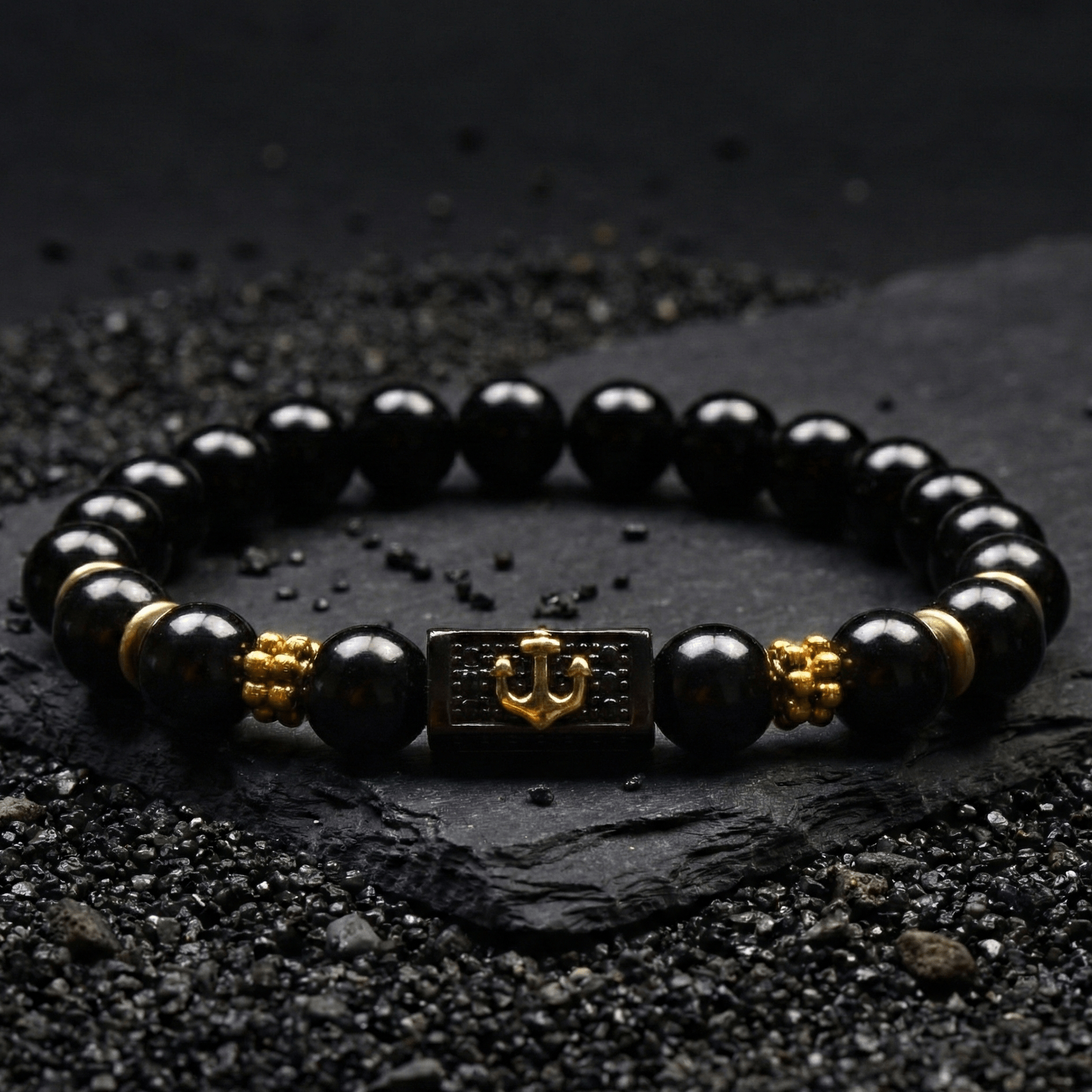 Matt Black Onyx Anchor Inlaid Hope Bracelet