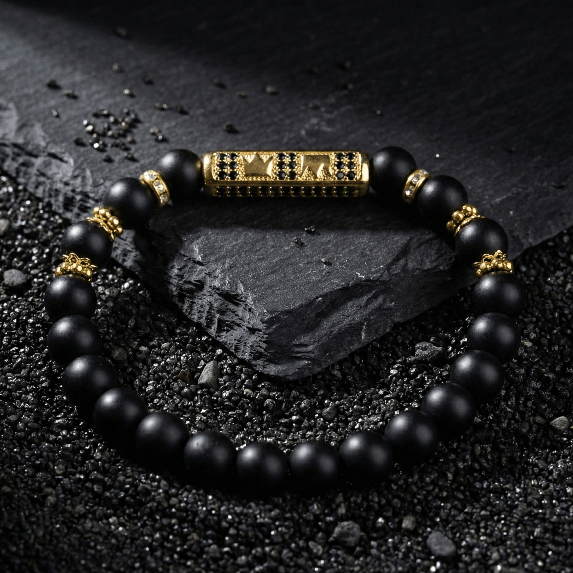 Matt Black Onyx Crown Bracelet