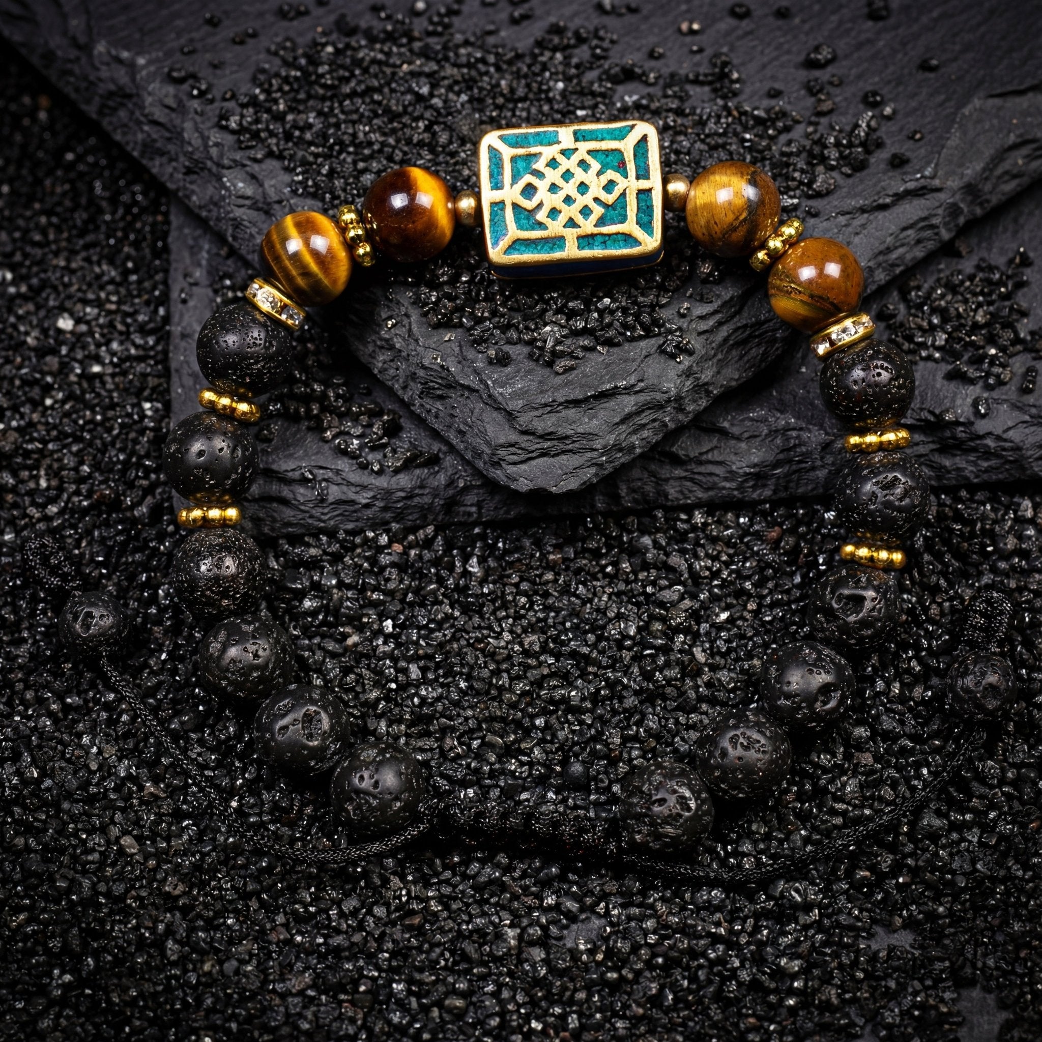 Strength Bracelet with Endless Knot Lapis Inlaid Charm