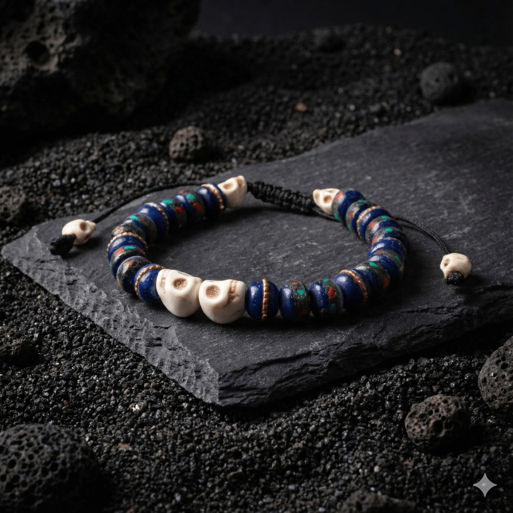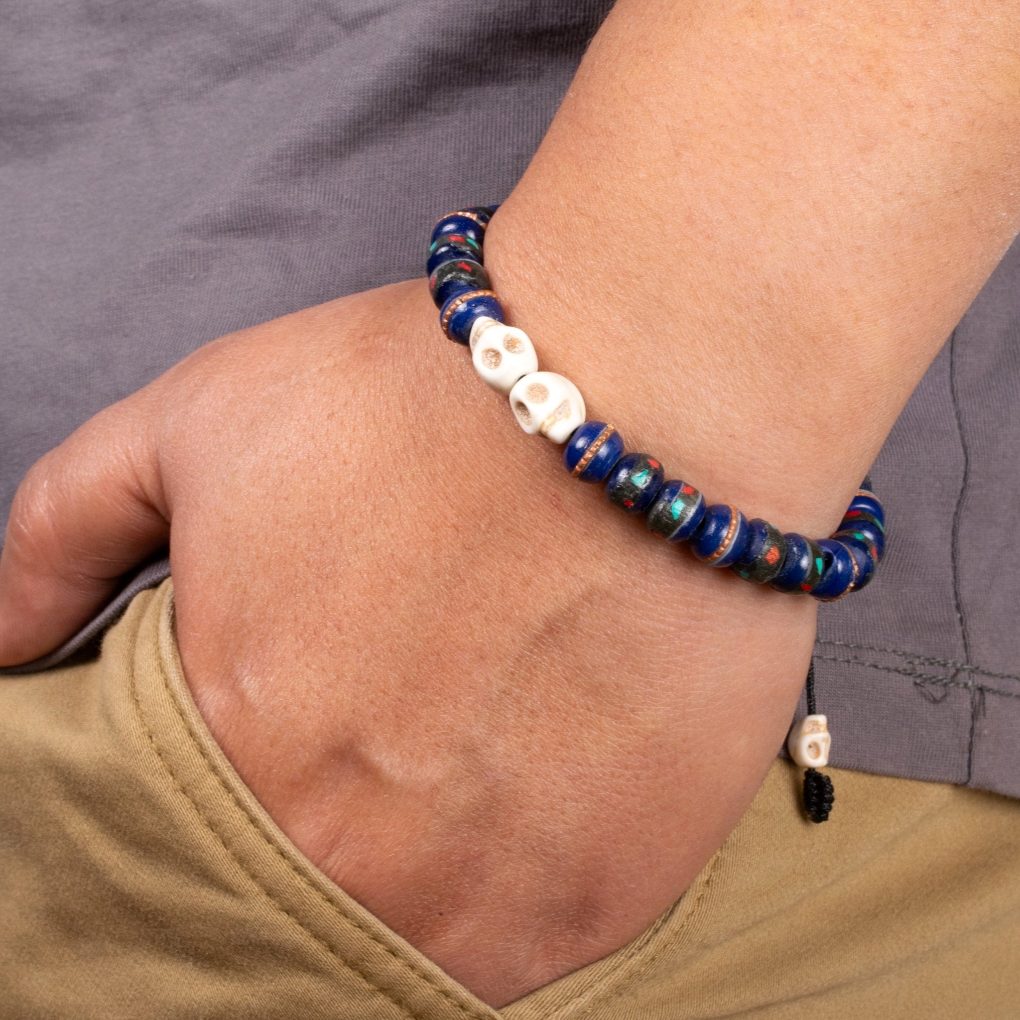Lapis Inlaid Bone & Skull Impermanence Bracelet