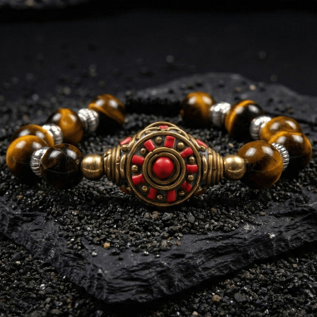 Tiger Eye Wheel Of Dharma Charm Bracelet
