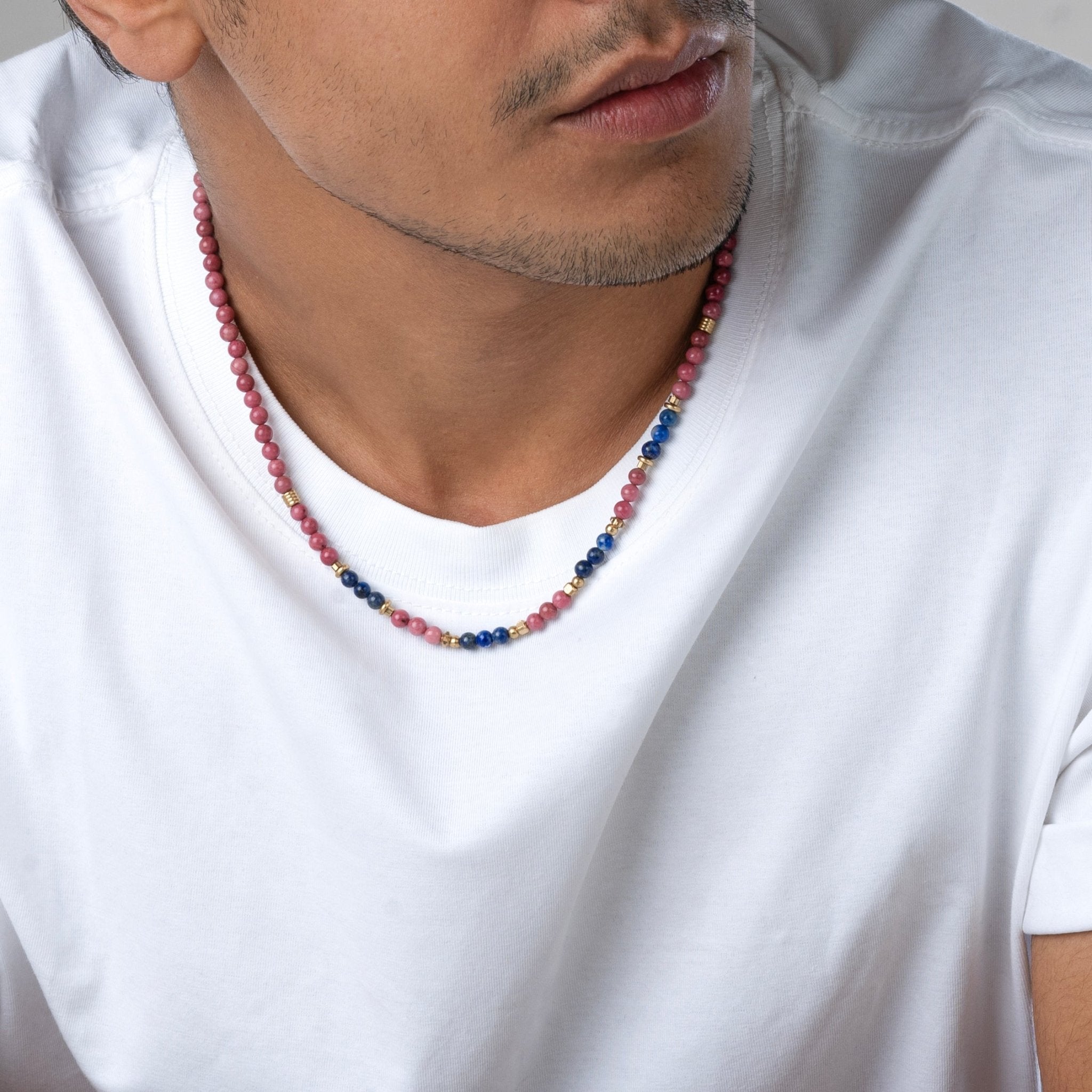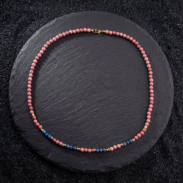 <strong>Material:</strong> Rhodonite, Lapis<br>