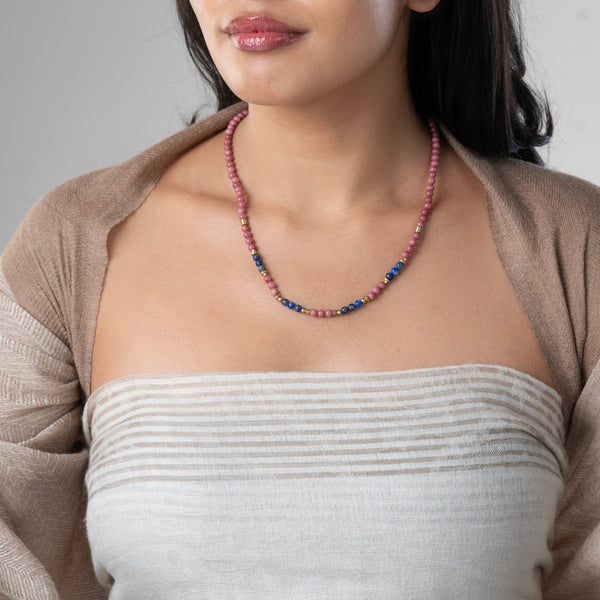 <strong>Healing & Protection:</strong> Rhodonite aids in healing emotional trauma, while Lapis opens the mind to new possibilities and aids spiritual growth.