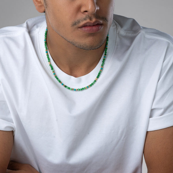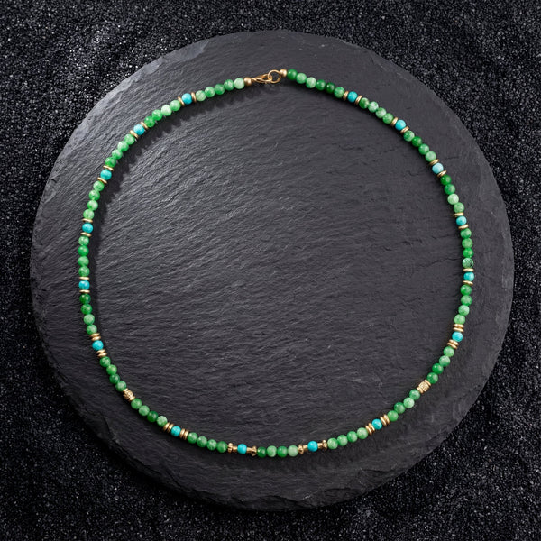 Tibetan Turquoise & Green Jade Short Mala