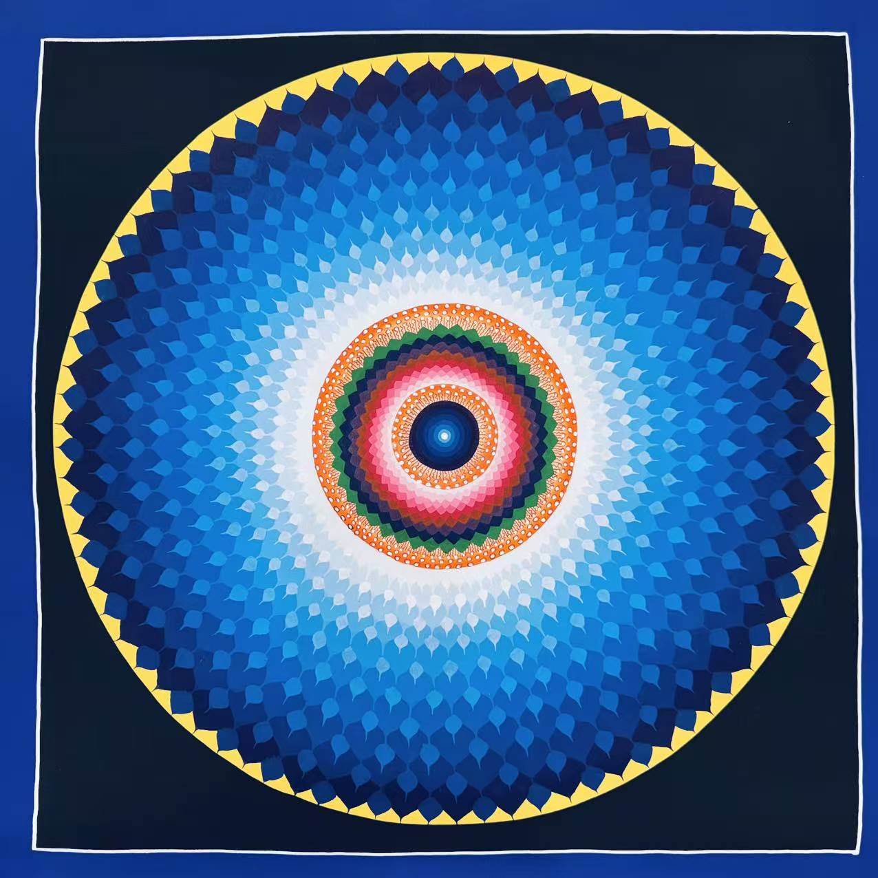 As soon as a Mandala Thangka painting, placed in a place, all the energies are transformed, the vibrations rise. Placing a symbol of sacred geometry in our environment or concentrating on it brings into our daily life a help to transform ourselves and attract to us the vibrations of the corresponding energy.