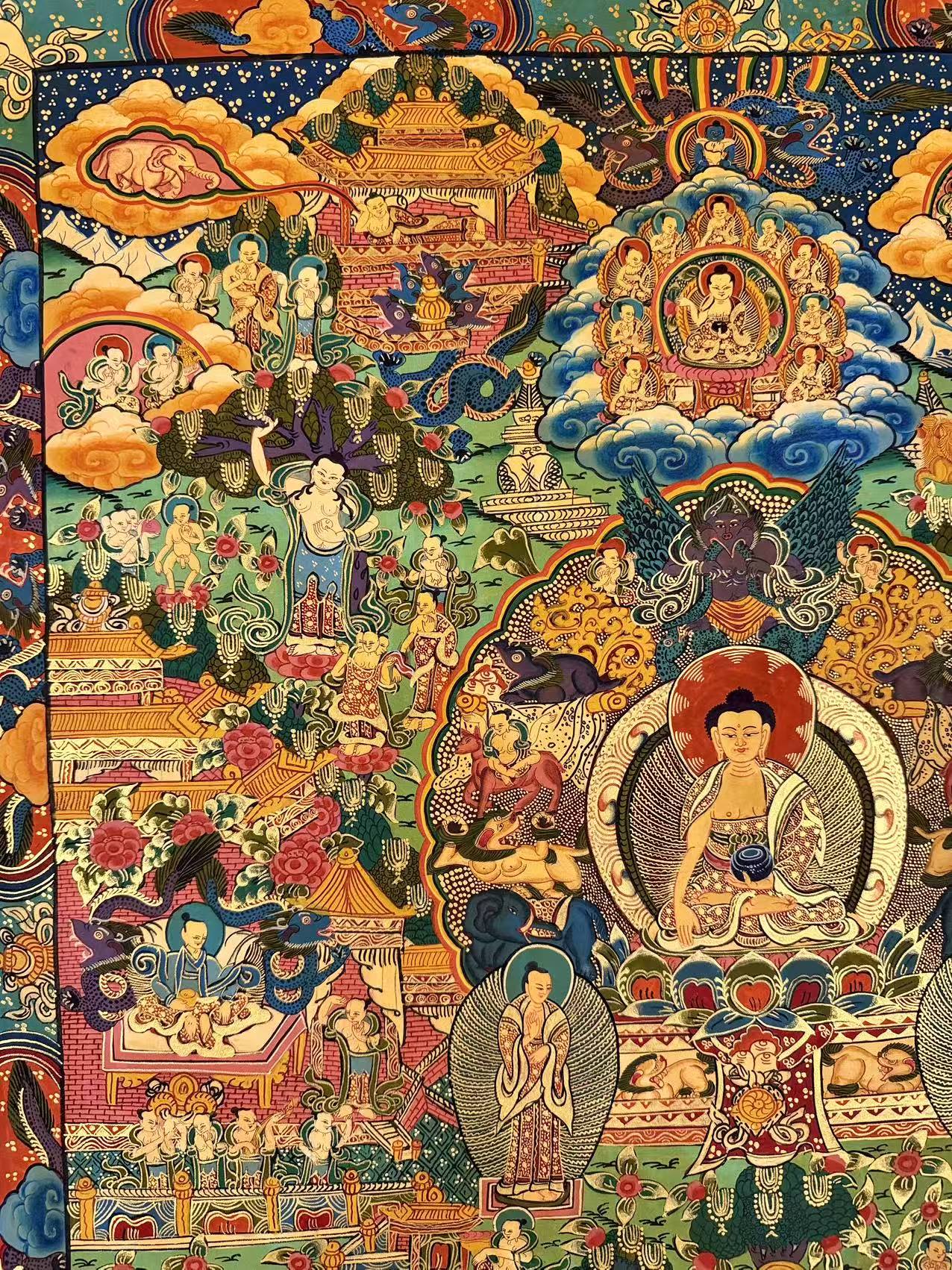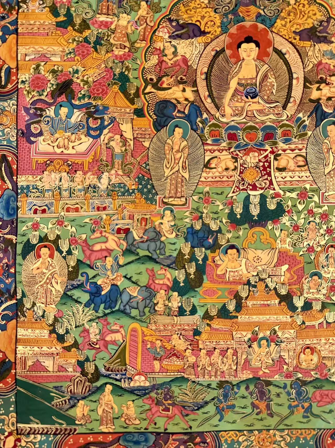 A Timeless Spiritual Gift This Buddha Life Story Thangka is not just an artwork but a profound spiritual guide. It is ideal for those seeking enlightenment, spiritual growth, or simply looking to enhance their environment with meaningful, culturally rich art. Perfect for collectors and spiritual practitioners alike.