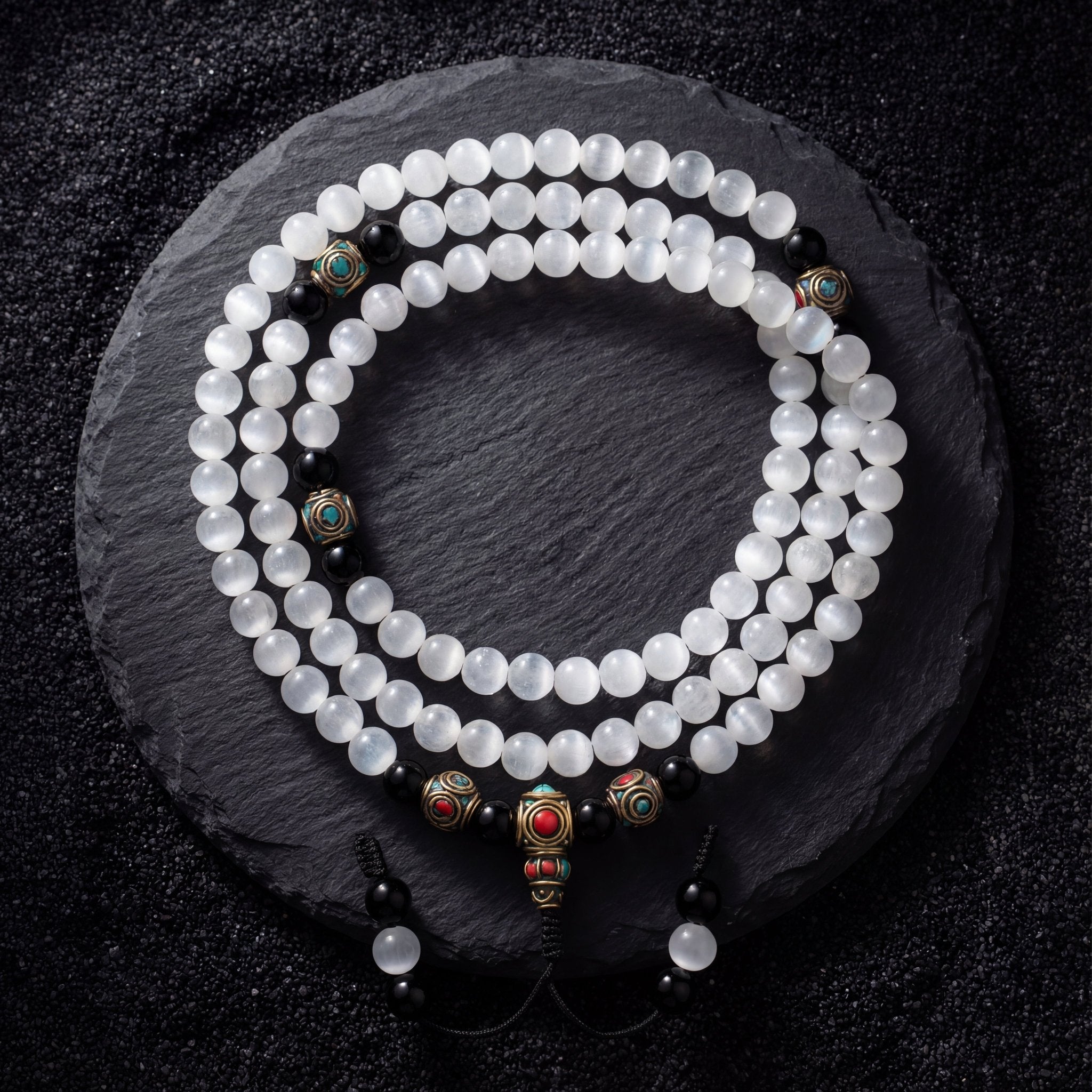 The Selenite Mala carries powerful purifying and uplifting energy, making it a sacred tool for meditation, prayer, and spiritual alignment. Selenite, often called the “stone of light,” is known for its ability to cleanse energy, clear the mind, and open the pathway to higher consciousness. Its luminous appearance symbolizes purity and divine guidance, making this mala an inspiring companion for mantra recitation, meditation practice, or daily mindfulness.