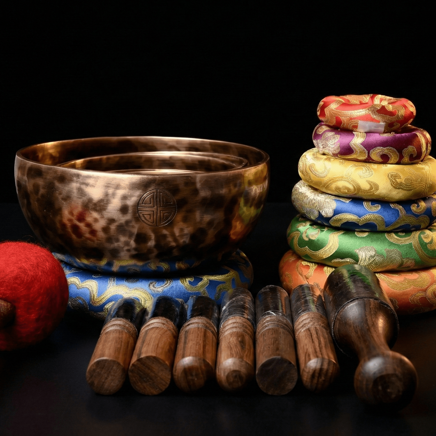 Super Flower Blood Moon Tibetan Singing Bowl Set – Handcrafted with Transformational Energy