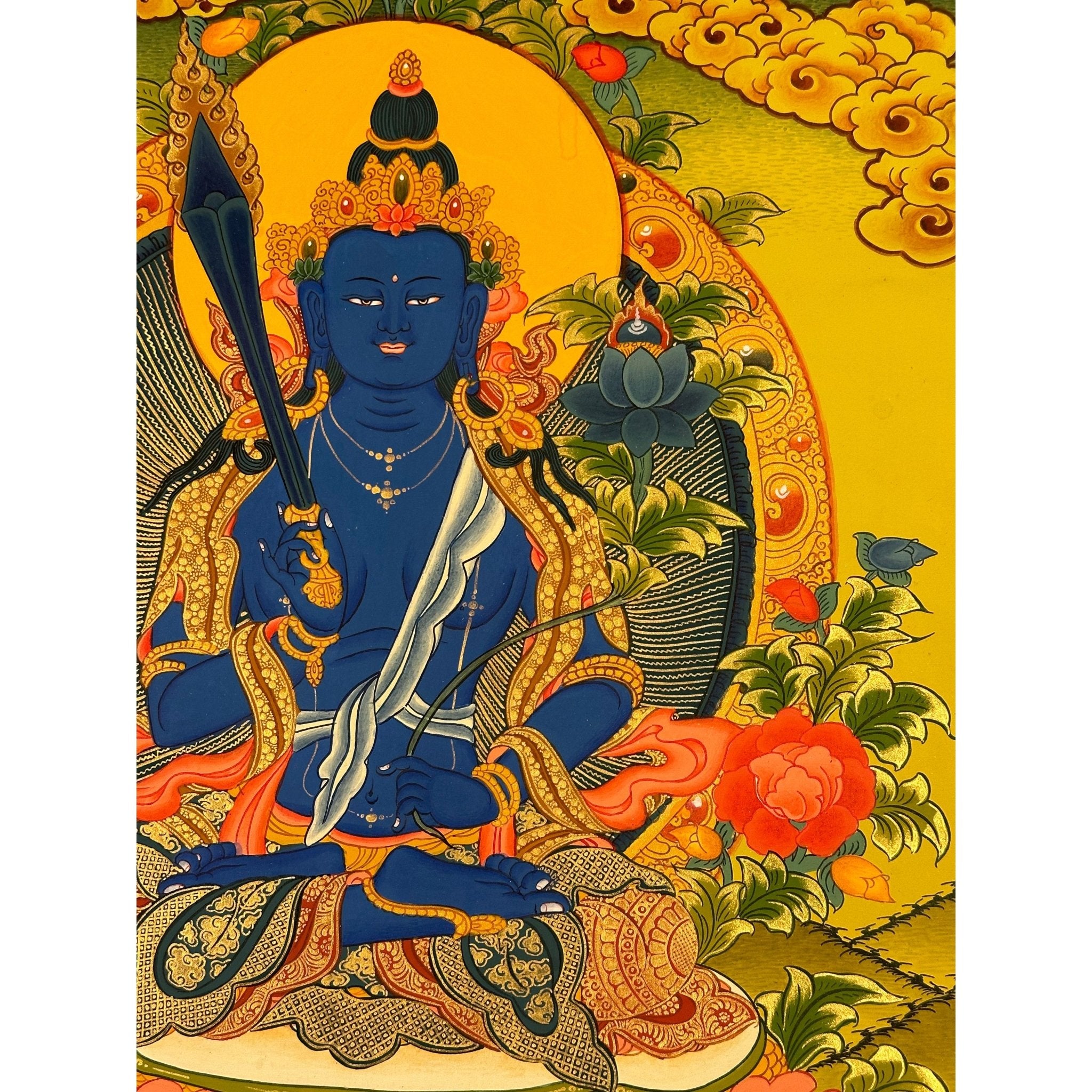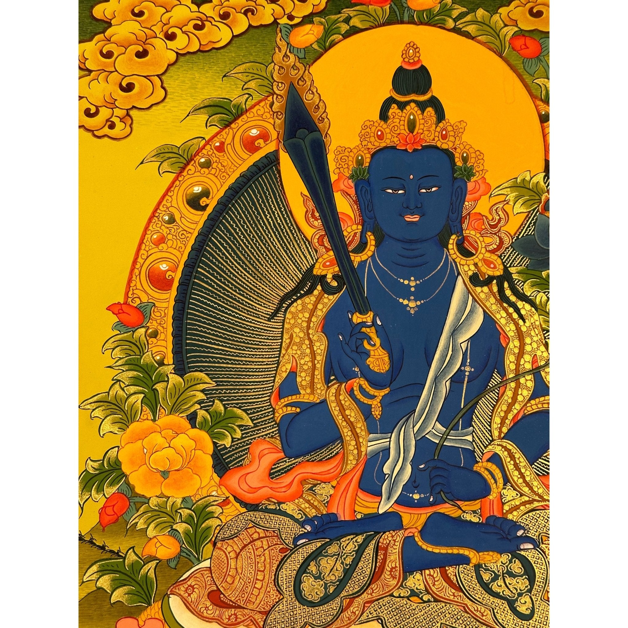 Embrace the wisdom and compassion of Akasagarbha Buddha with this masterfully crafted Thangka—a true masterpiece of art and spirituality.