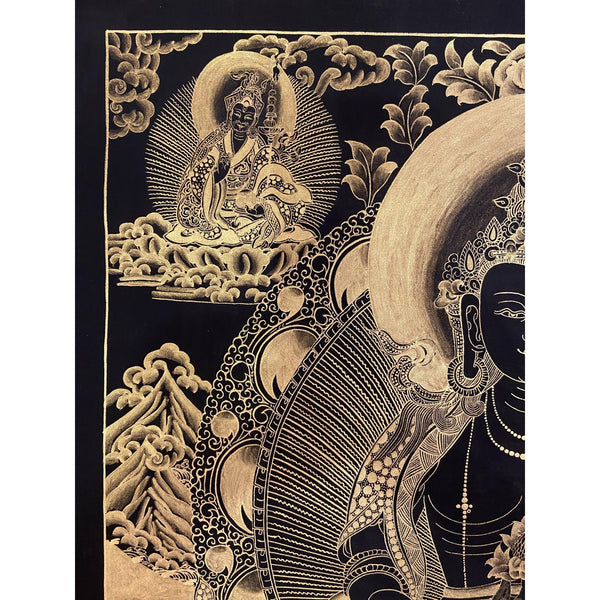 This Amitayus Buddha Thangka serves not only as a beautiful art piece but as a sacred spiritual tool for enhancing your life with longevity, light, and wisdom. Ideal for personal or ceremonial use, it can be placed on your family altar or any room in need of spiritual peace and harmony.