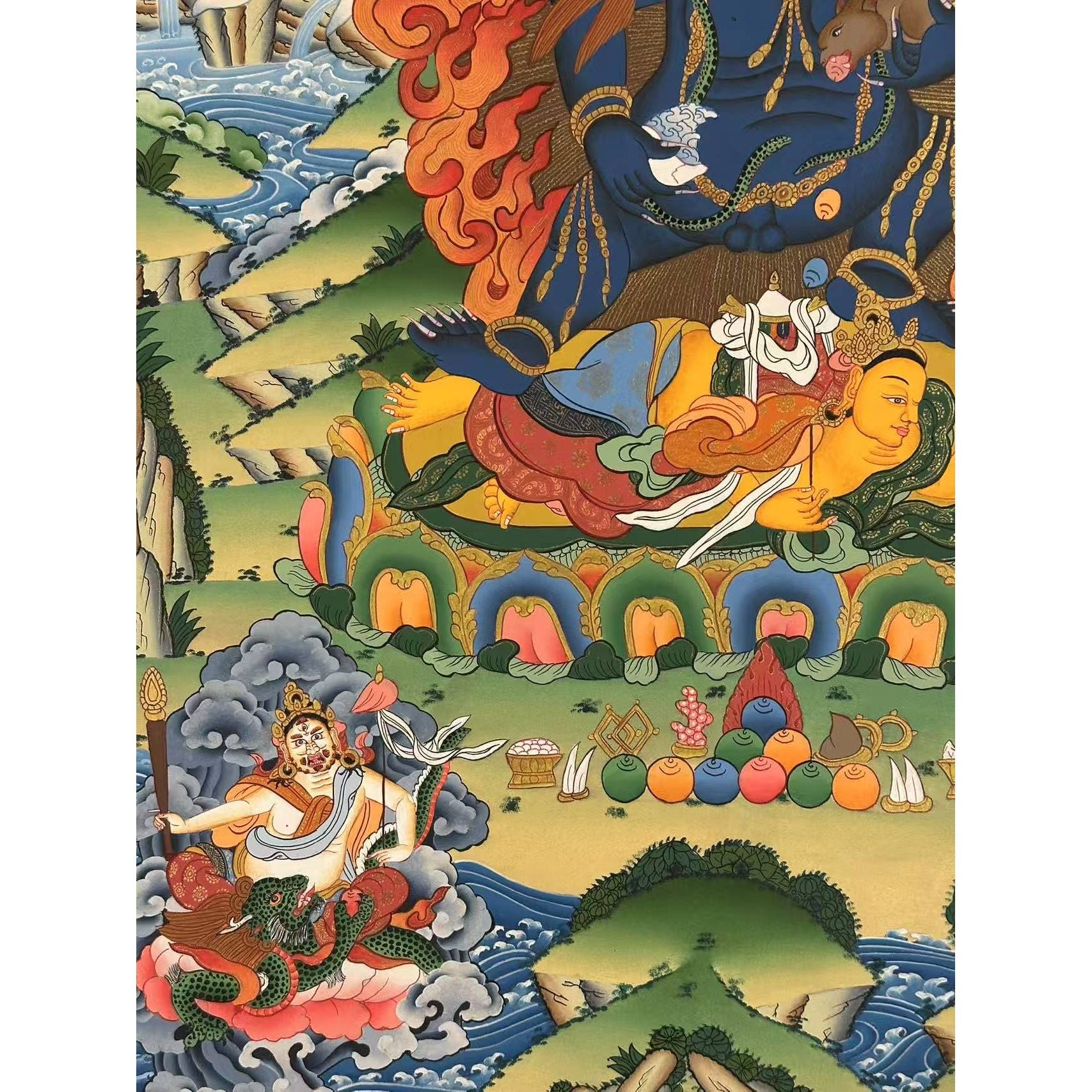 A Sacred Addition to Your Space The Black Jambhala Thangka is not just a decorative piece, but a powerful spiritual tool to invoke blessings of wealth, prosperity, and happiness. Its intricate details, vibrant colors, and profound symbolism make it a meaningful and transformative addition to your sacred space.