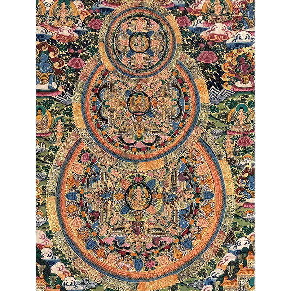 Thangka paintings are painted using natural minerals such as agate, gold, silver, cinnabar, saffron, ocher, rhubarb,lapis and many other minerals. To create the ideal pigment for painting, these materials are ground several times. This makes the materials even more durable and long-lasting. Thus, you can surely expect the color of the Thangka to withstand the test of time.
