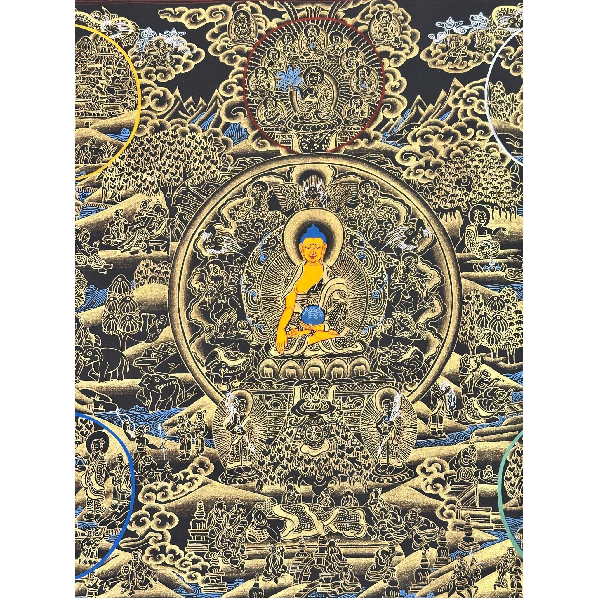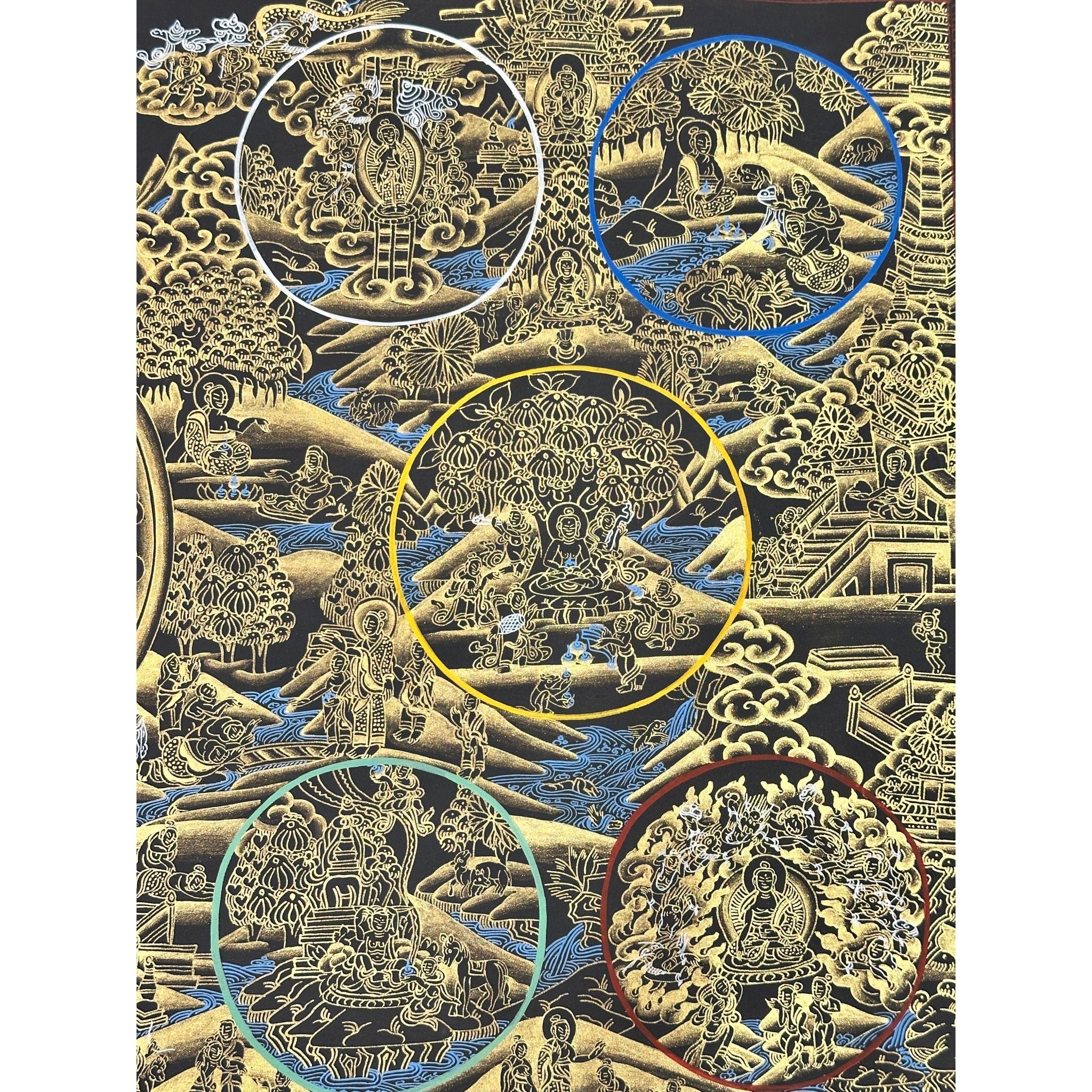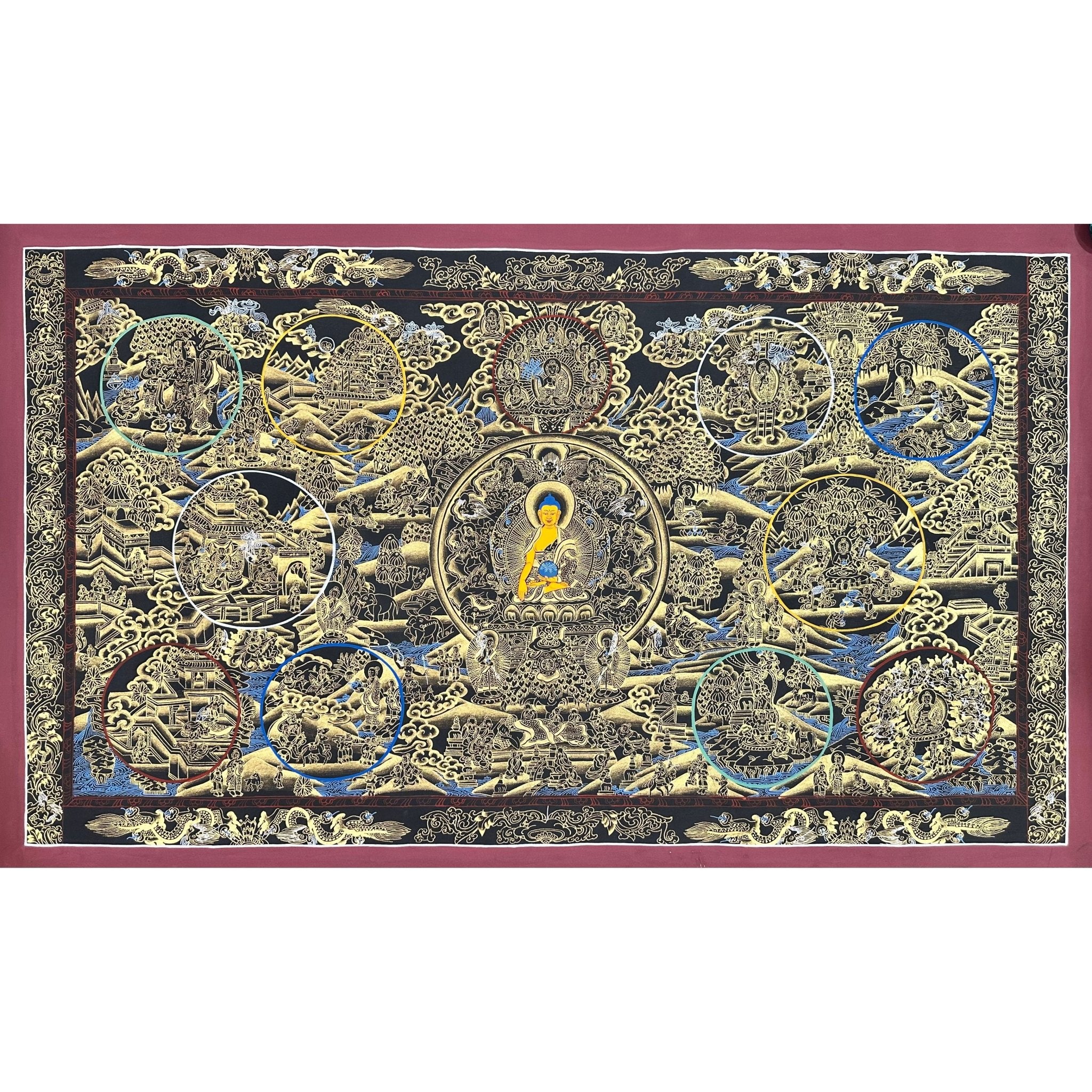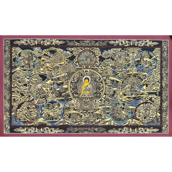 Buddha Life Story Thangka – A Journey to Enlightenment
