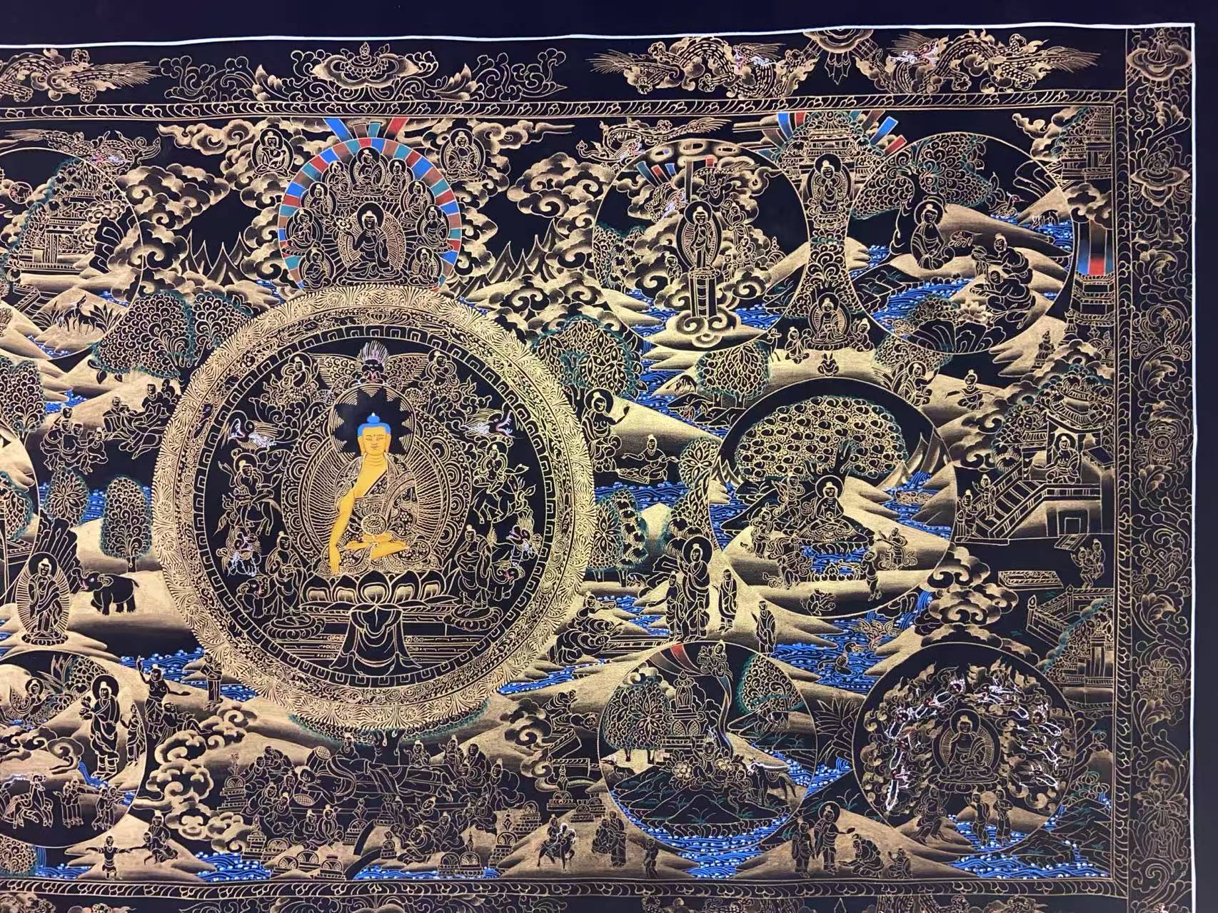 Tibetan Thangka paintings, also known as the “Art of Enlightenment”, are sacred pieces of art that are rich in symbolism. They are important supports that are revered for meditation and visualization.