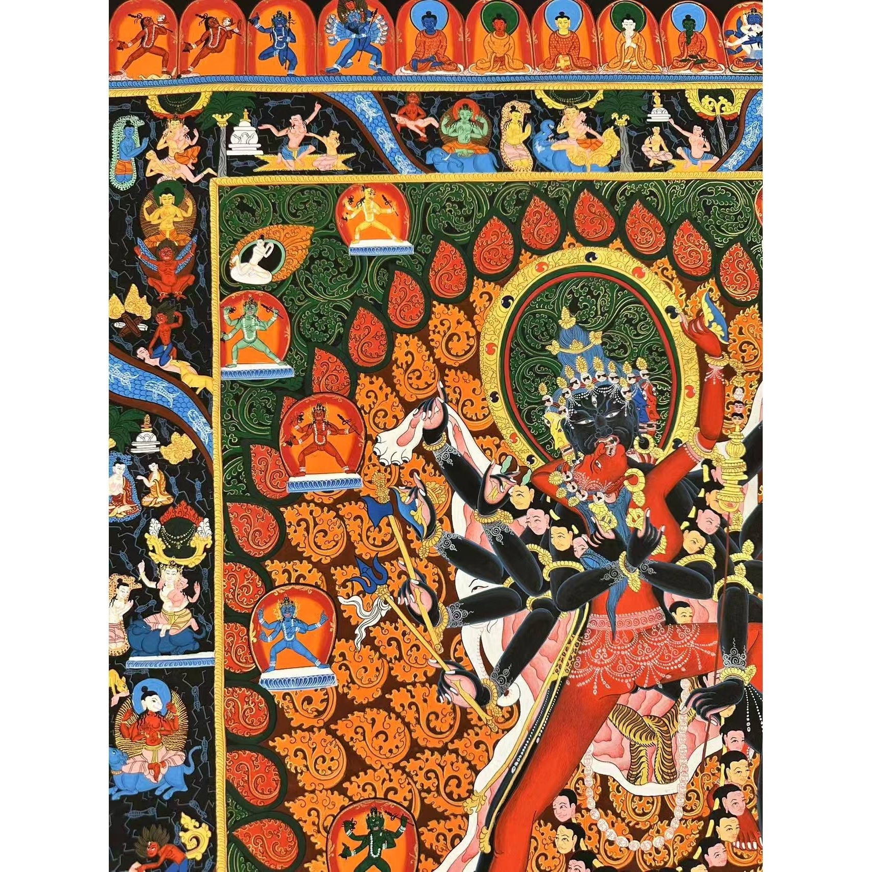 Spiritual Significance: A powerful depiction of Chakrasamvara’s role in Tantric Buddhist practice, aiding in the removal of obstacles and the attainment of spiritual bliss.
