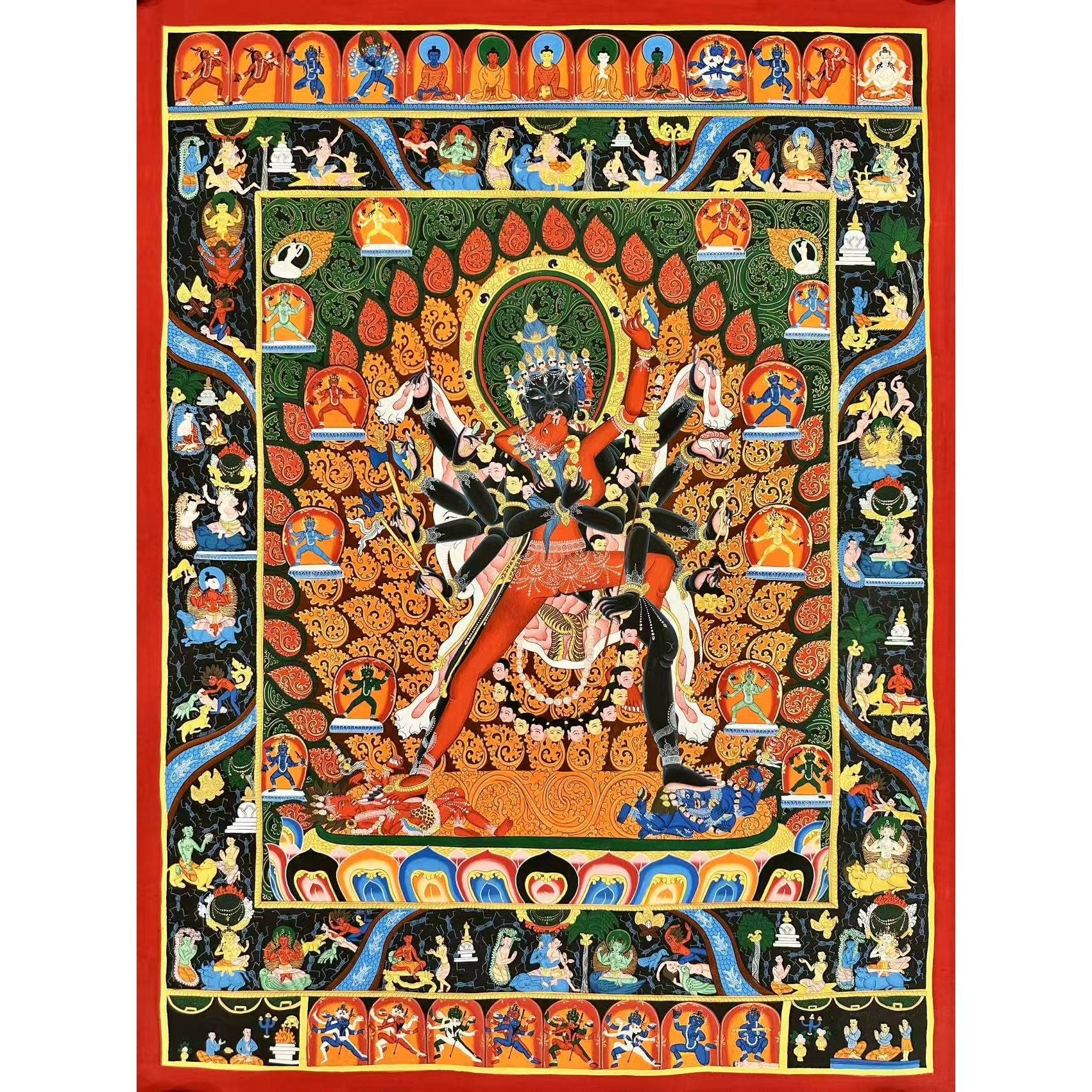 Enhance Your Space with Sacred Energy This Chakrasamvara Thangka is not just an artistic piece, but a guide for spiritual transformation. Its rich symbolism and intricate details bring a sacred energy to any space, promoting inner peace, wisdom, and emotional healing.