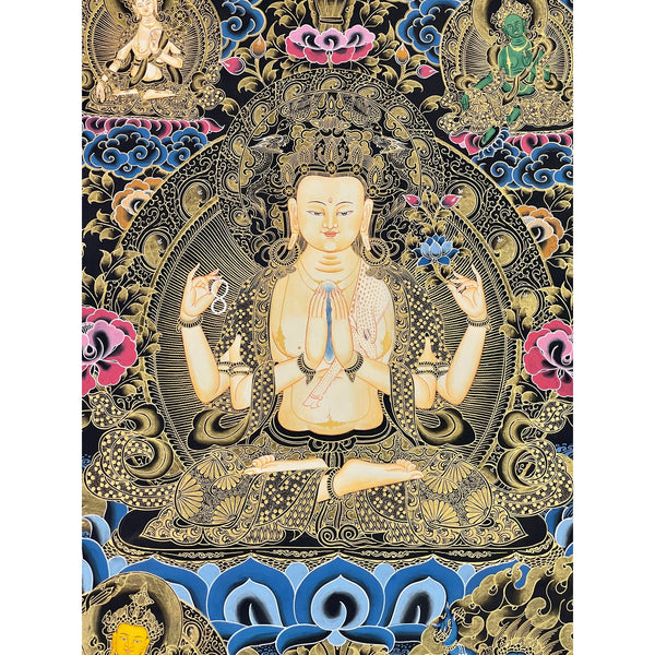 Symbol of Compassion: Chenrezig’s depiction emphasizes the boundless compassion for all living beings, offering a reminder to practice kindness and empathy.