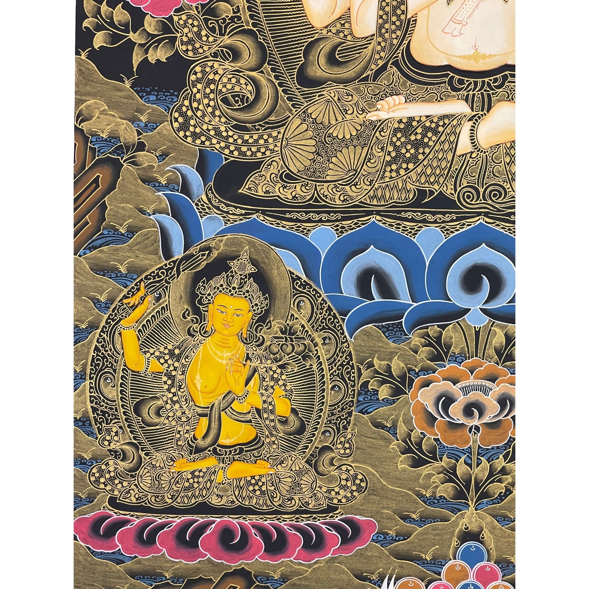 Exquisite Craftsmanship: Created using 24K gold and semi-precious minerals, this Thangka embodies sacred beauty and artistic skill.