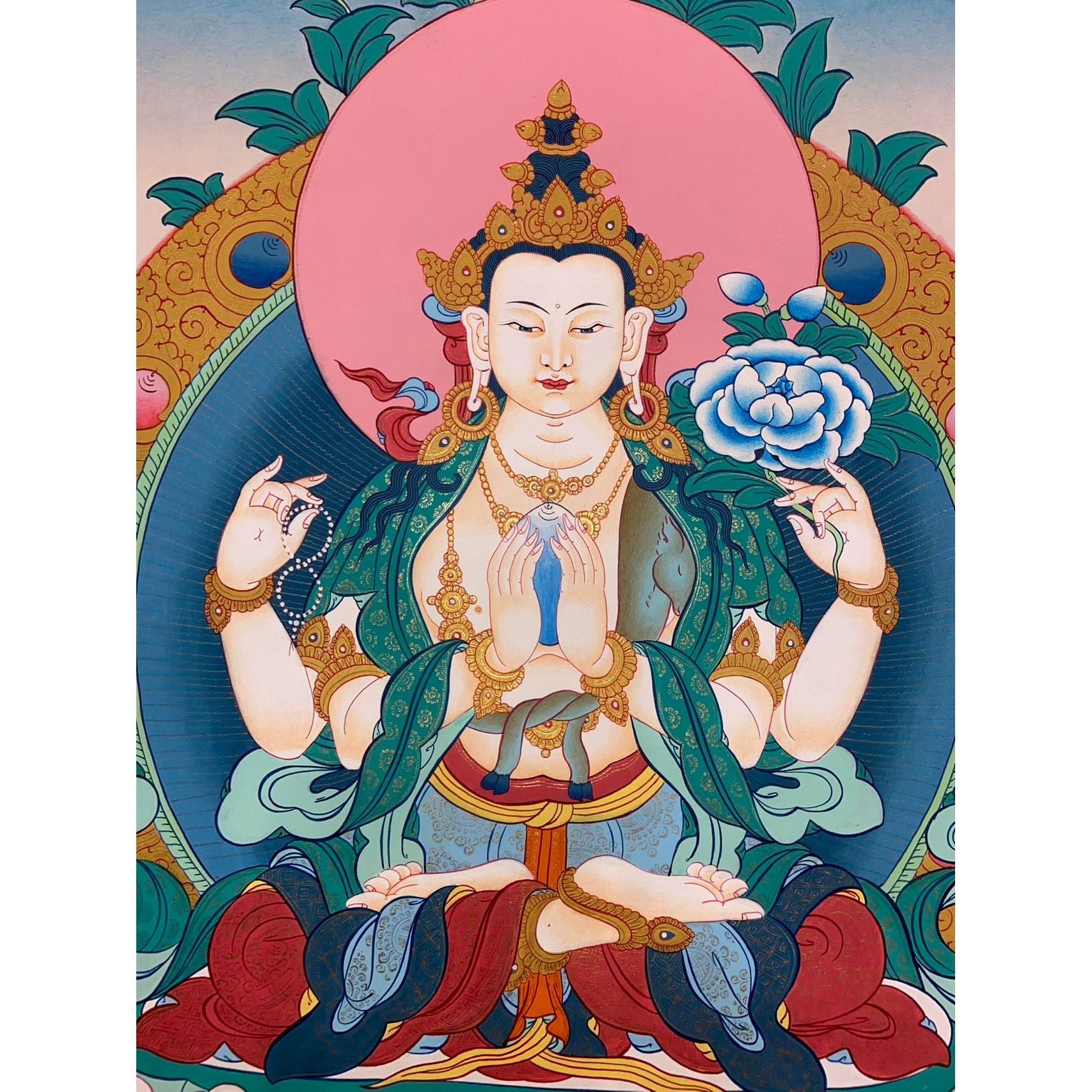 Symbol of Compassion: Chenrezig’s depiction emphasizes the boundless compassion for all living beings, offering a reminder to practice kindness and empathy.