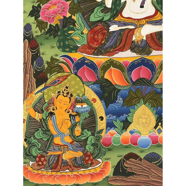 Tibetan Thangka paintings, also known as the “Art of Enlightenment”, are sacred pieces of art that are rich in symbolism. They are important supports that are revered for meditation and visualization.