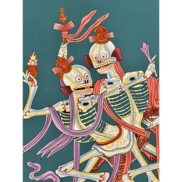 About Citipati – The Lords of the Cemetery Citipati, also known as the "Lord and Lady of the Cemetery," are depicted as a pair of dancing skeletons. The male skeleton represents Heruka Chakrasamvara, while the female skeleton represents Vajrayogini, his consort. Citipati is considered a high-level Dharma Protector, specifically for practitioners of Vajrayogini’s tantra. This deity is revered for its powerful role in helping to remove obstacles that arise during meditation practices related to Vajrayogini.