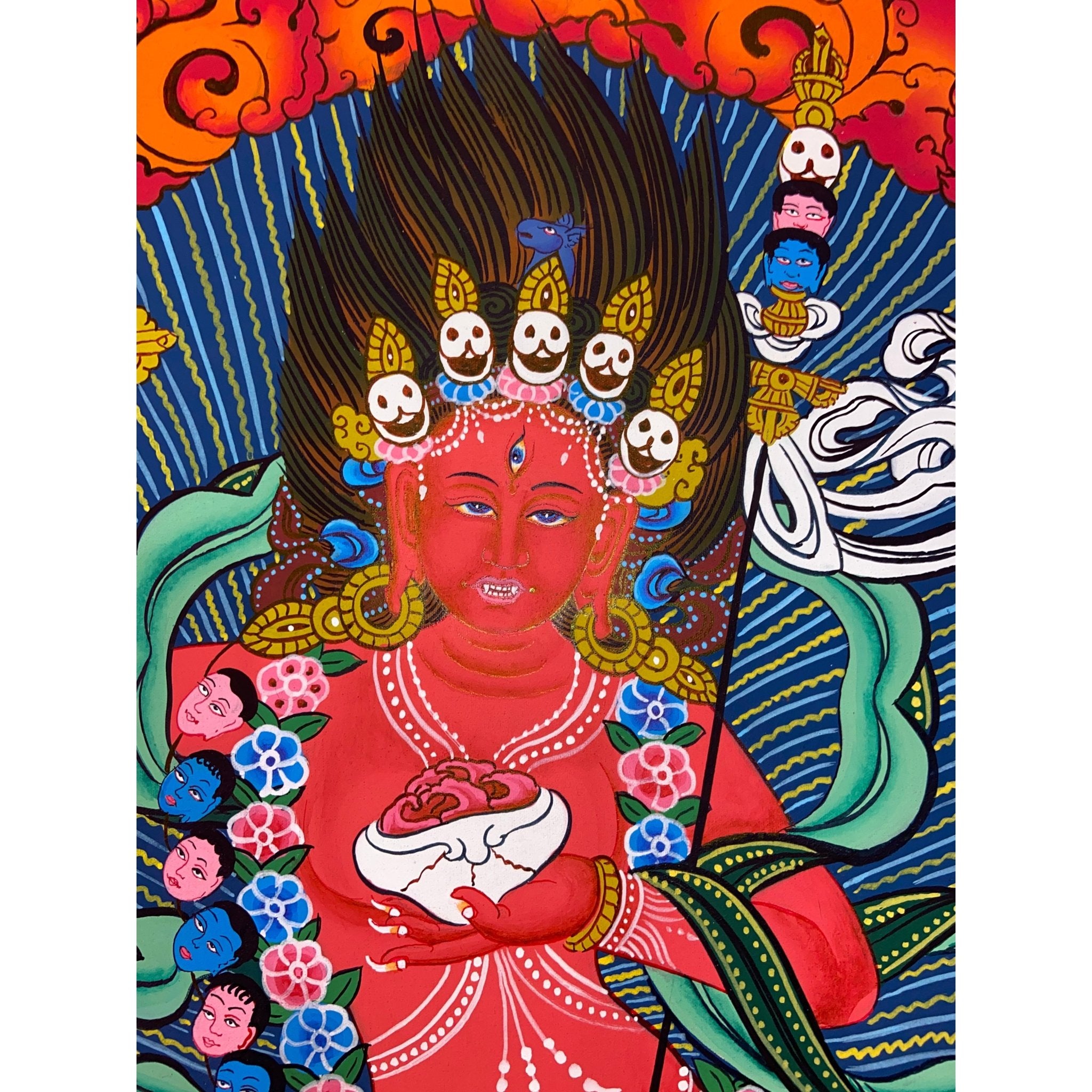 Transformative Energy: Her wrathful expression and powerful iconography invite the transformation of negative emotions, thoughts, and karmic obstacles.