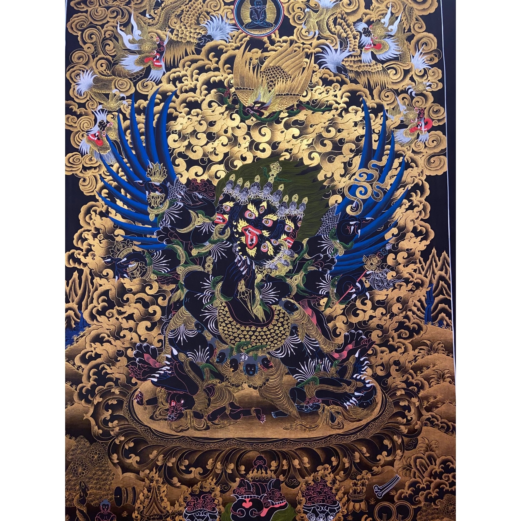 Enhances Concentration in Practice: The contrasting tones of Black and Gold in this Nakthang Style thangka are specifically designed to help strengthen focus and concentration during Vajrakilaya practices.