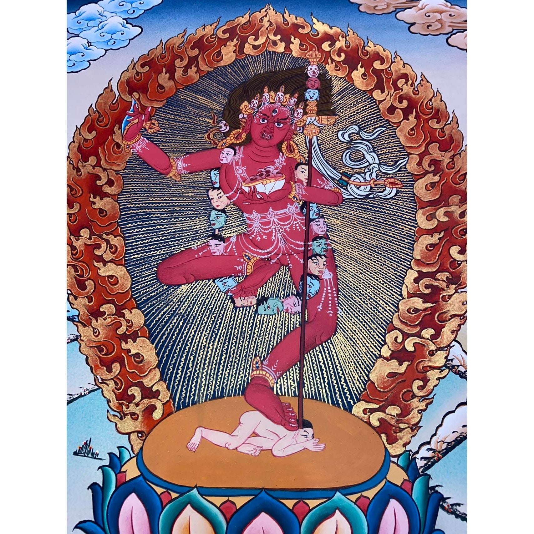Transformative Energy: Her wrathful expression and powerful iconography invite the transformation of negative emotions, thoughts, and karmic obstacles.