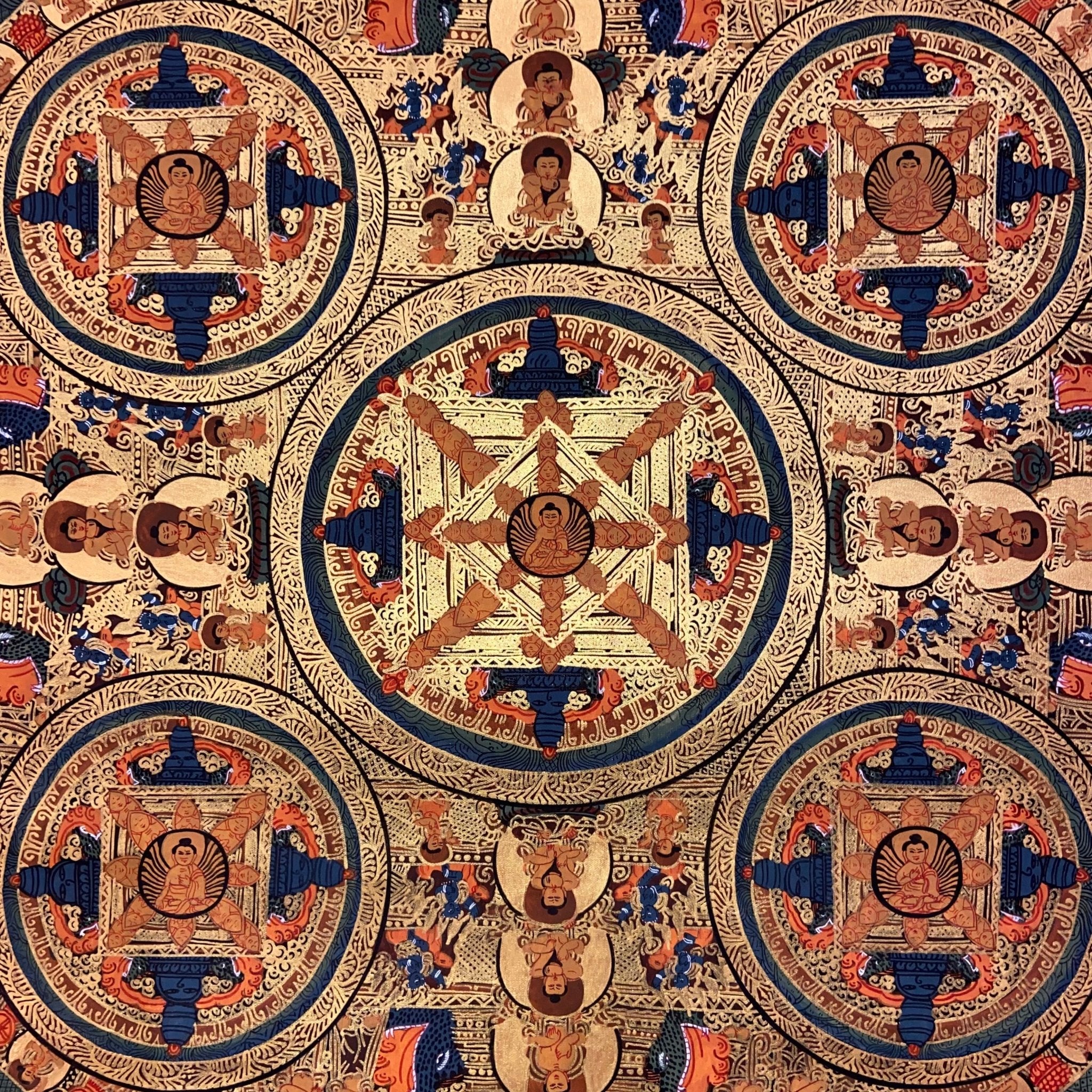 Sacred Geometry: Mandalas are a form of sacred geometry, designed to create harmonious energy in the spaces they occupy. By hanging this Five Buddha Mandala, you can invite positive energy, balance, and tranquility into your environment.