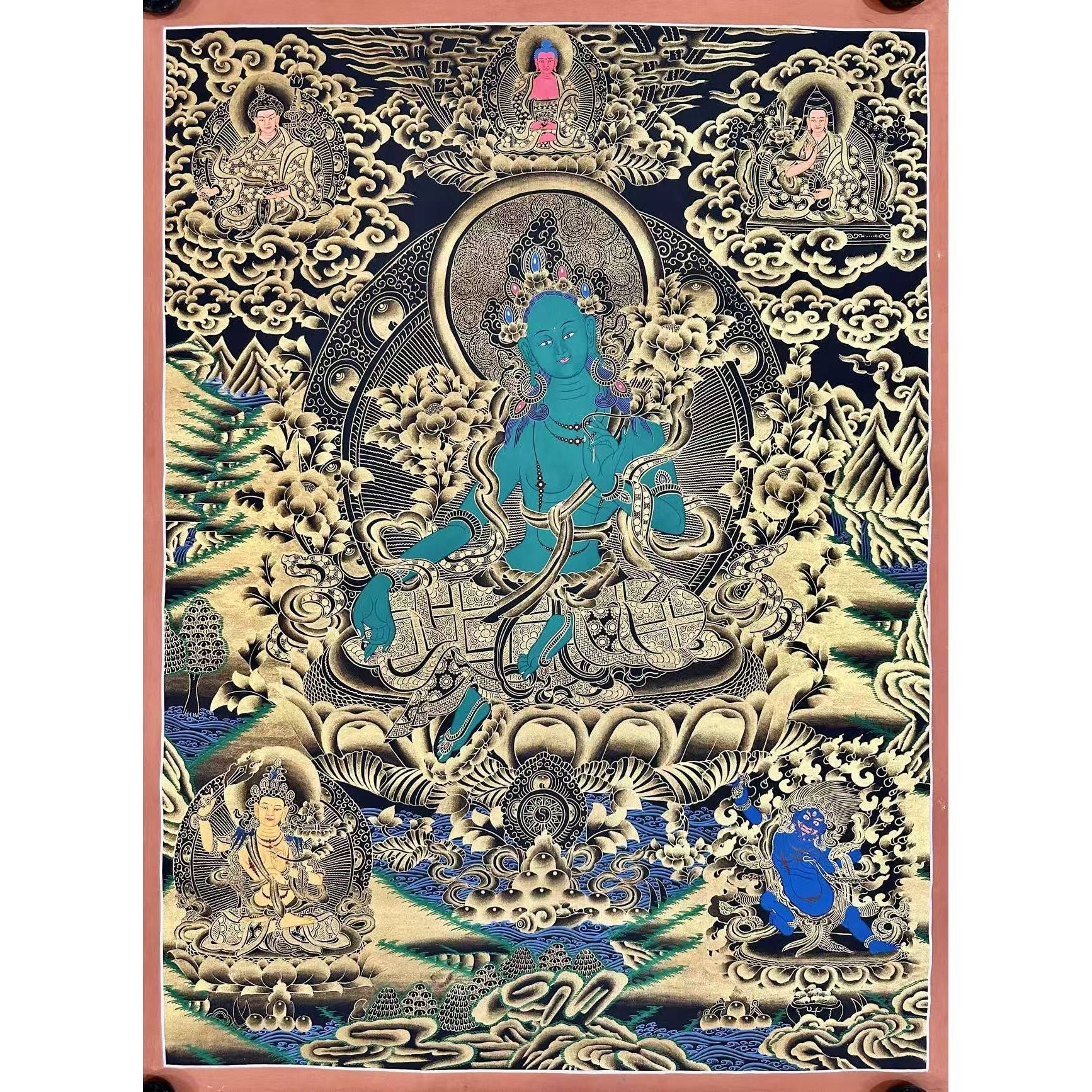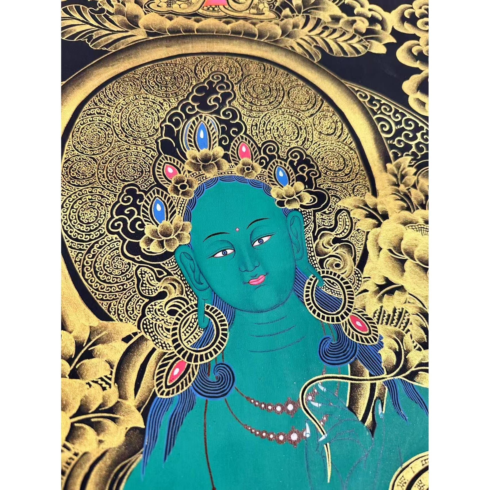 Cultural and Religious Depth: A meaningful portrayal of Green Tara, symbolizing her active compassion and protection.