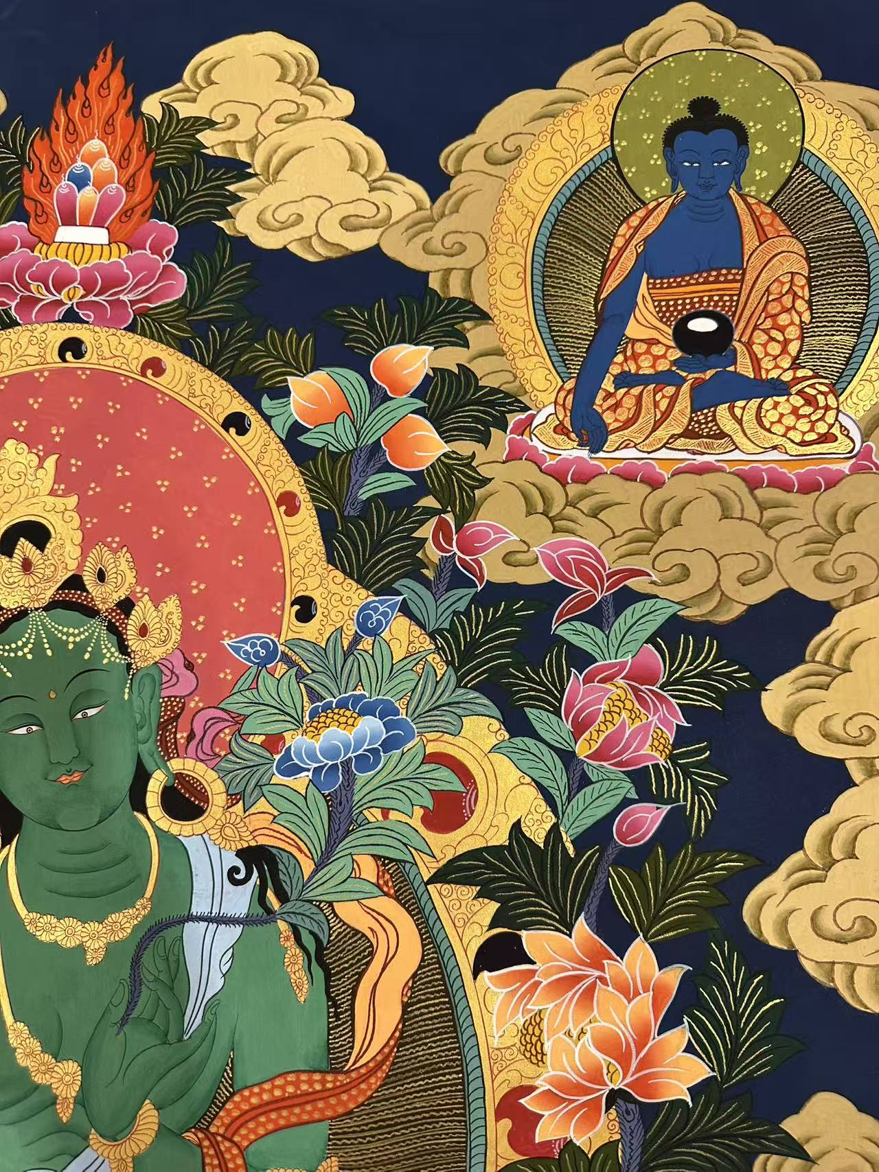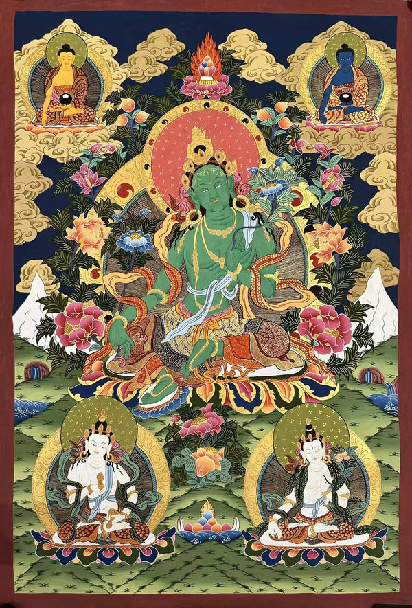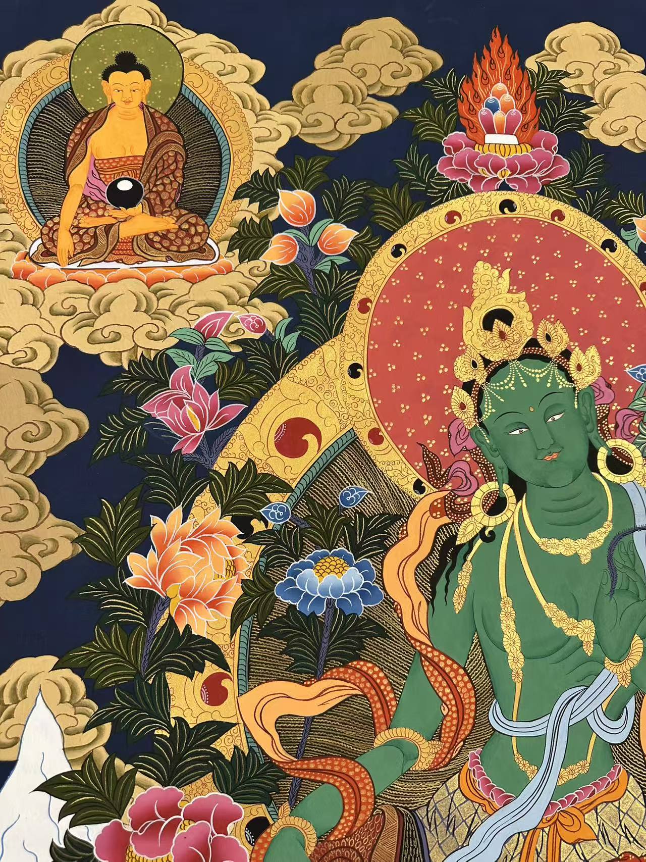 Cultural and Religious Depth: A meaningful portrayal of Green Tara, symbolizing her active compassion and protection.