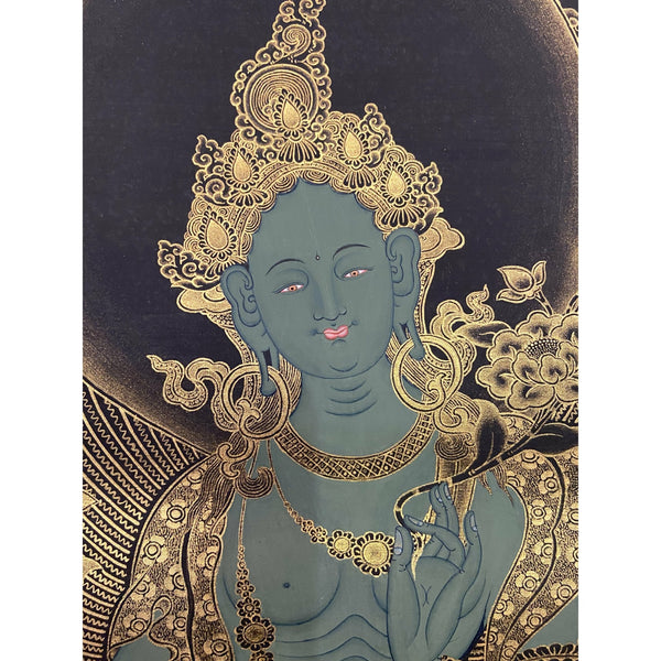 Cultural and Religious Depth: A meaningful portrayal of Green Tara, symbolizing her active compassion and protection.