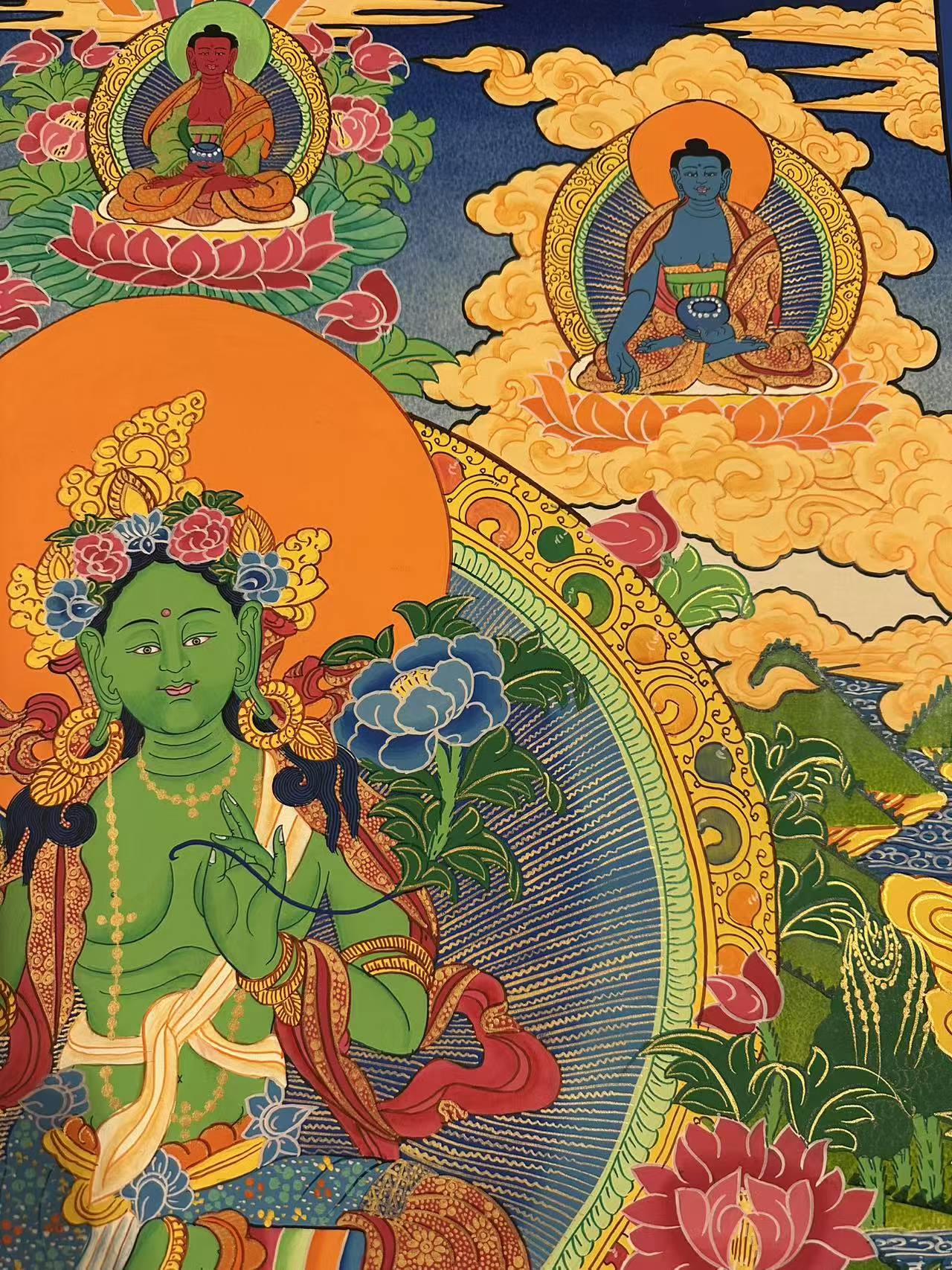 A Timeless Spiritual Gift This Green Tara Thangka serves as more than just a beautiful art piece; it is a spiritual tool for healing and empowerment. Perfect for those seeking spiritual growth or looking to enhance their environment with profound, culturally rich art.