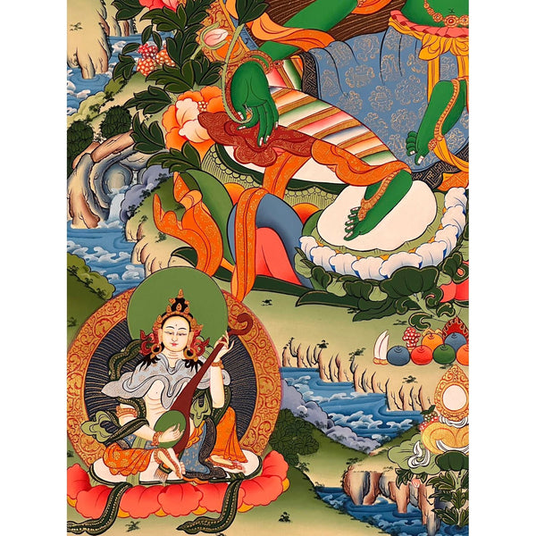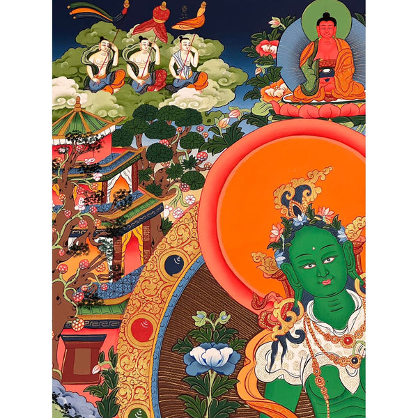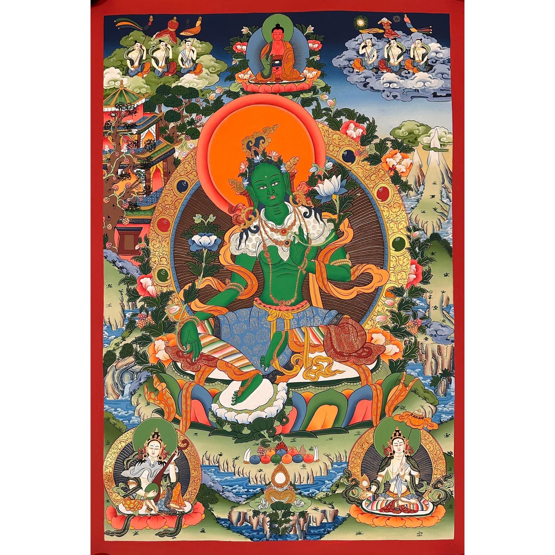 Cultural and Religious Depth: A meaningful portrayal of Green Tara, symbolizing her active compassion and protection.