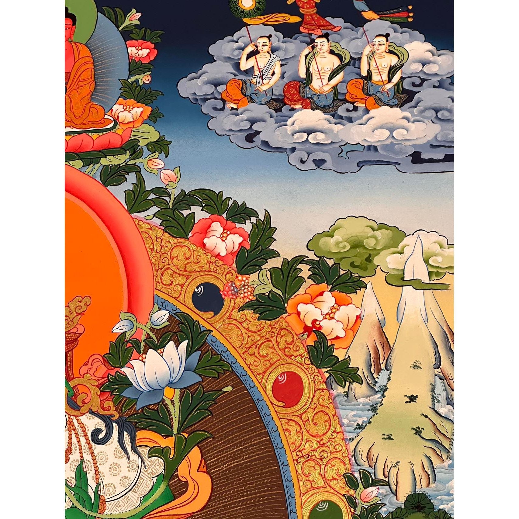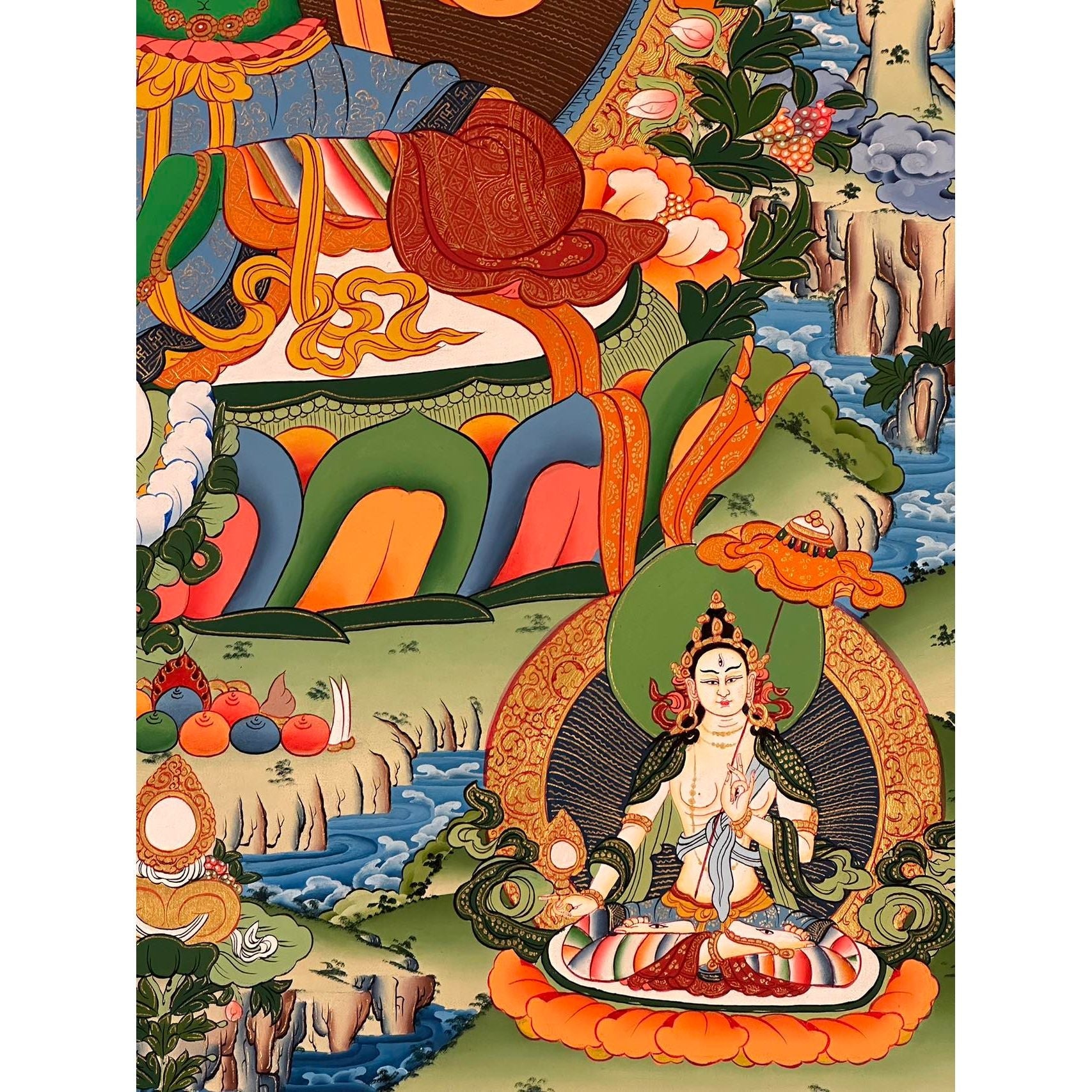 Tibetan Thangka paintings, also known as the “Art of Enlightenment”, are sacred pieces of art that are rich in symbolism. They are important supports that are revered for meditation and visualization.