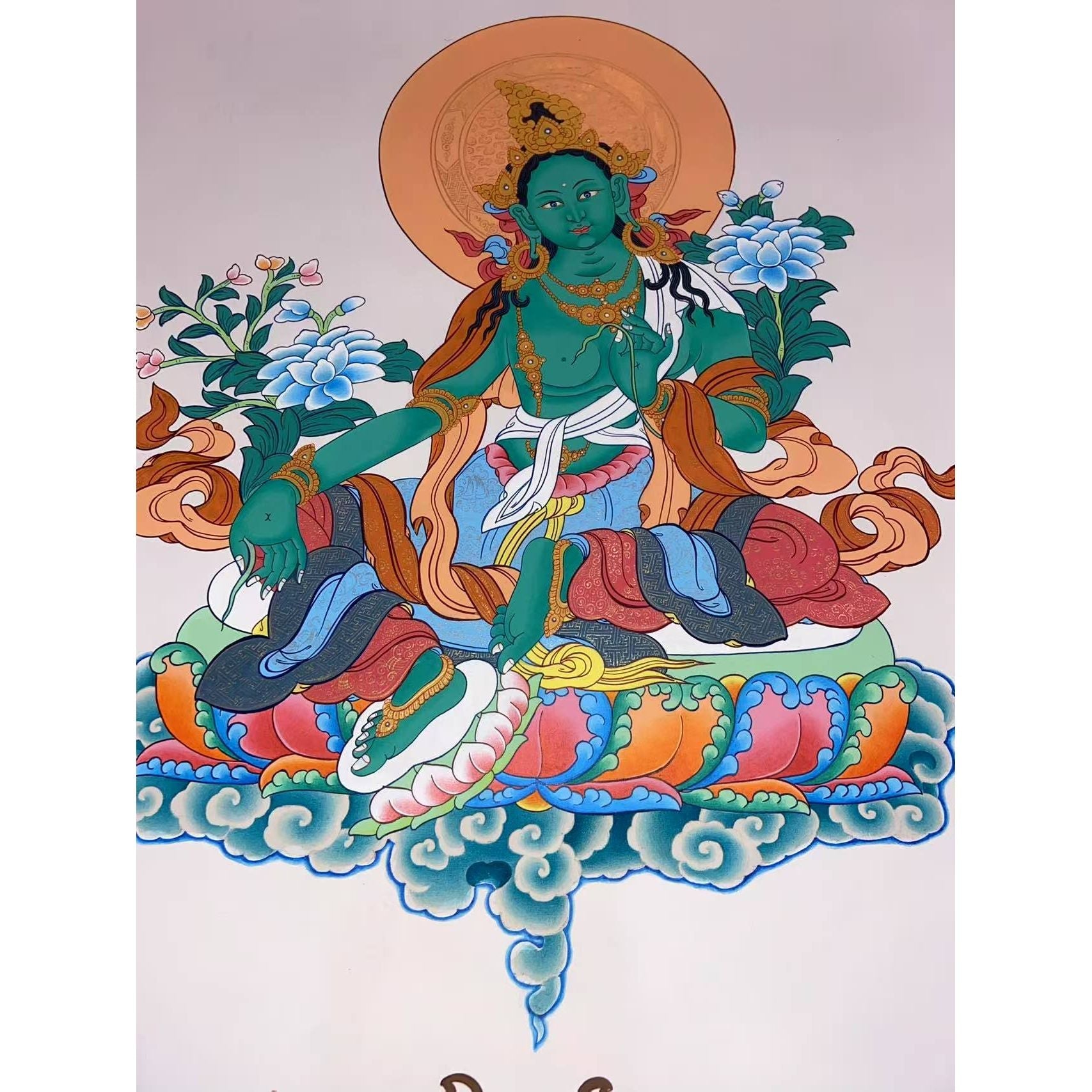Cultural and Religious Depth: A meaningful portrayal of Green Tara, symbolizing her active compassion and protection.