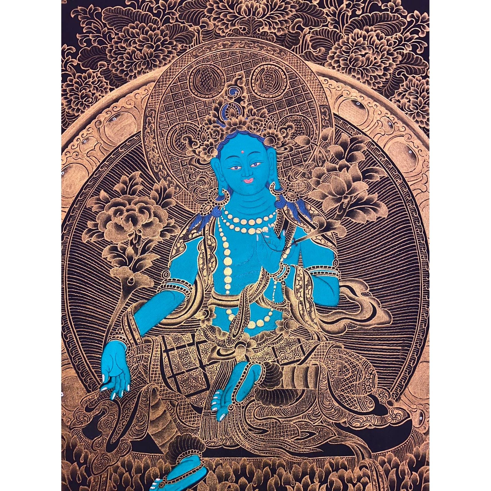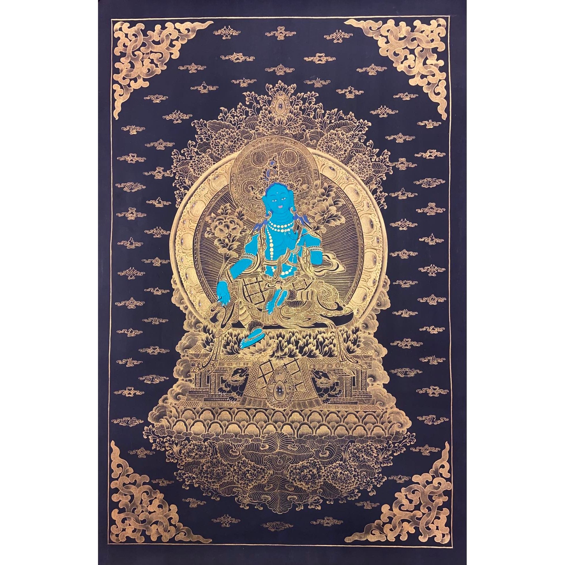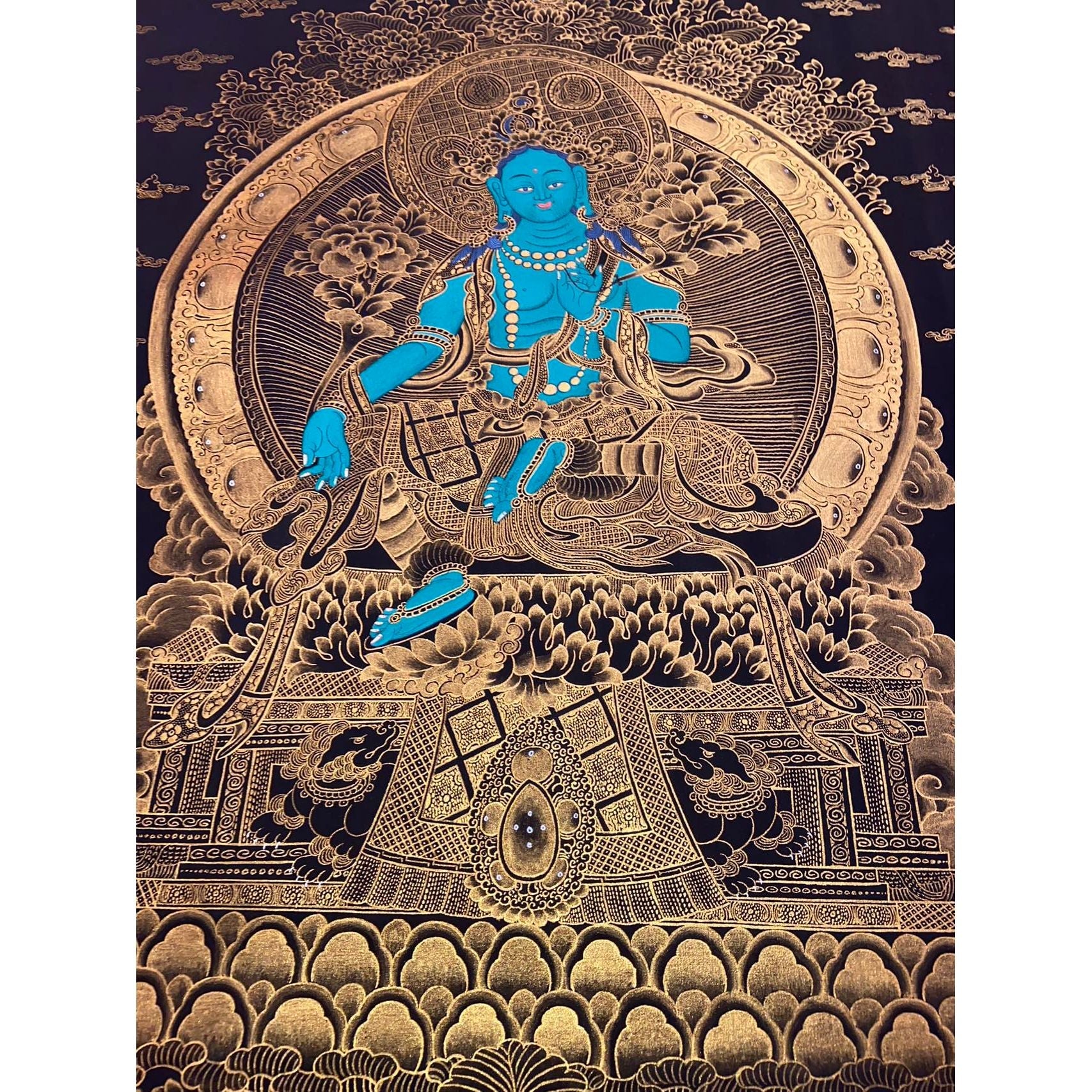 Elegant Art: Crafted with Tibetan colors and 24-carat gold, this Thangka enhances any space with its serene beauty and profound meaning.
